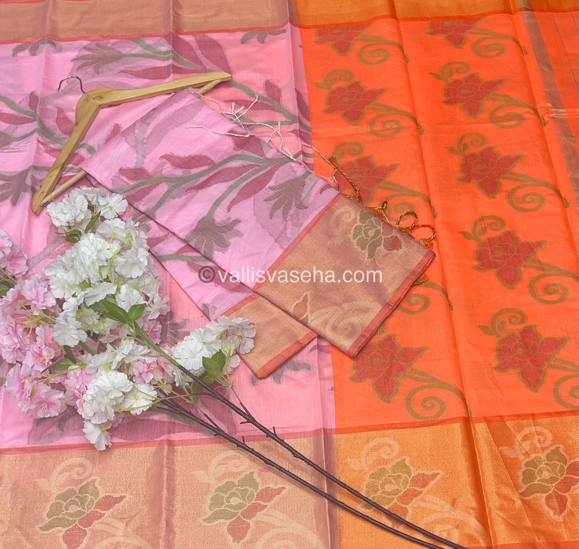 Banarasi Pochampally Weaving Semi Soft Cotton Saree - light Pink with Orange - VVBPS001