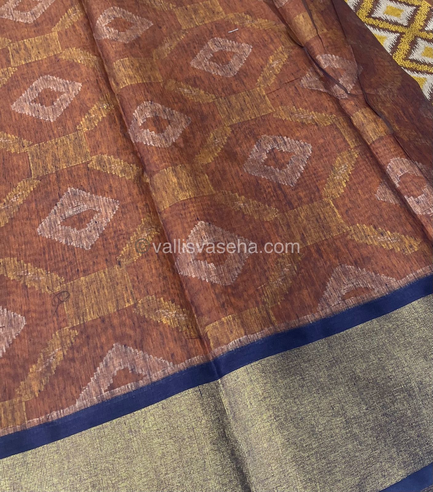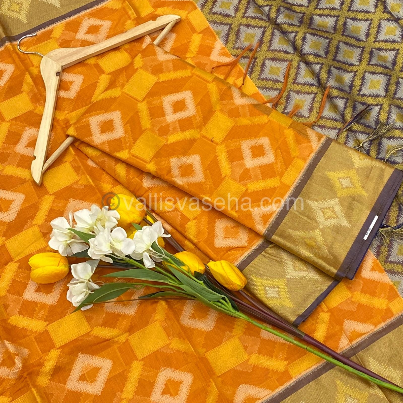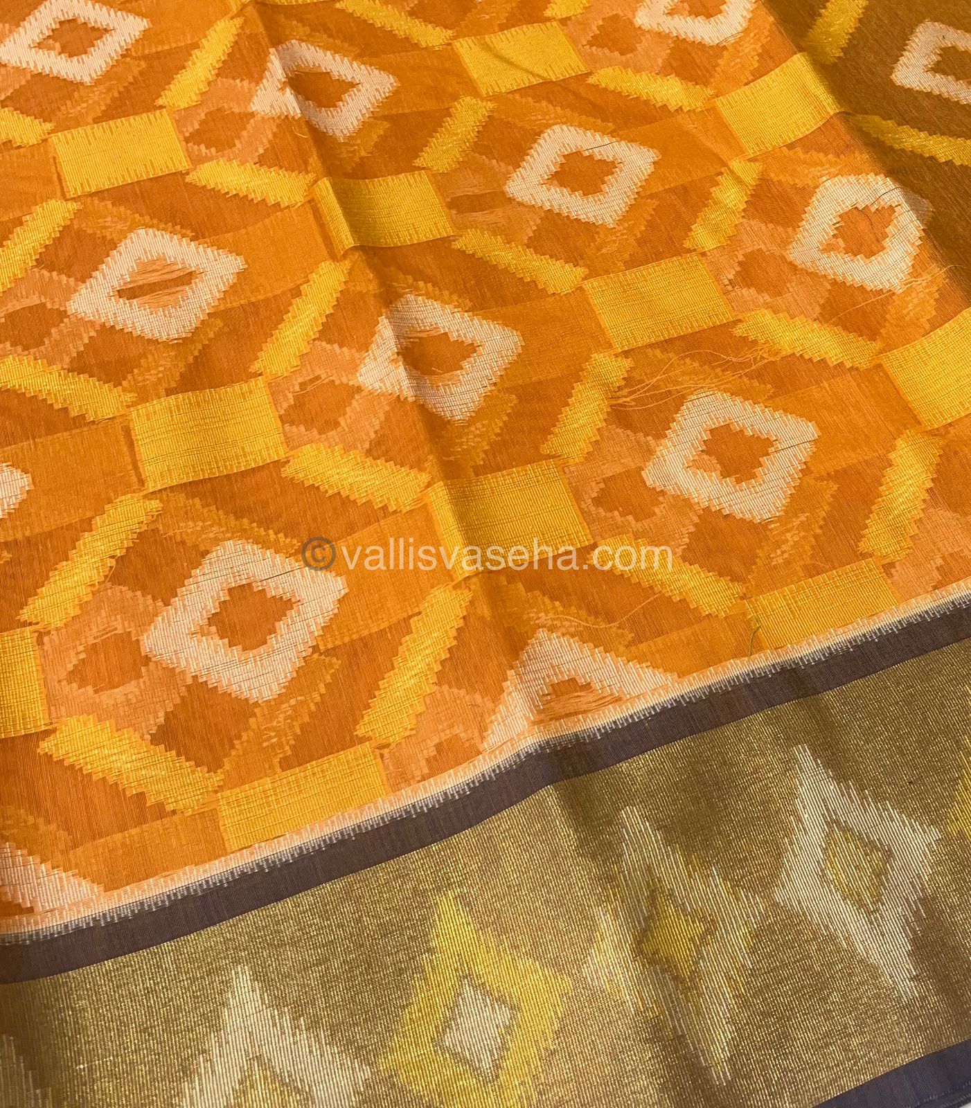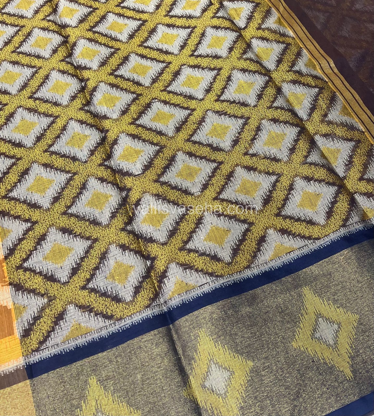 Banarasi Pochampally Weaving Semi Soft Cotton Saree - Yellow with Navy Blue - VVBPS001