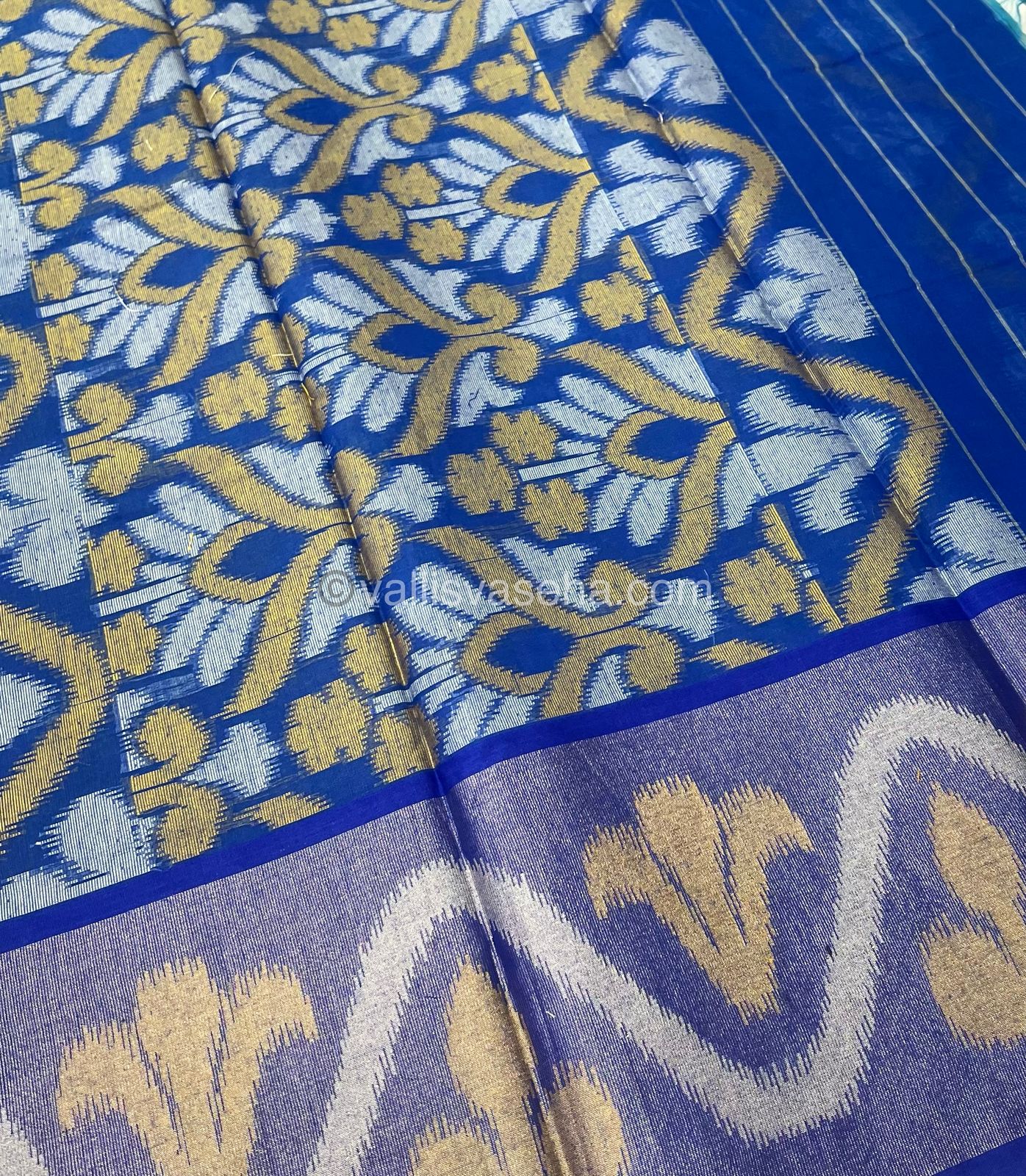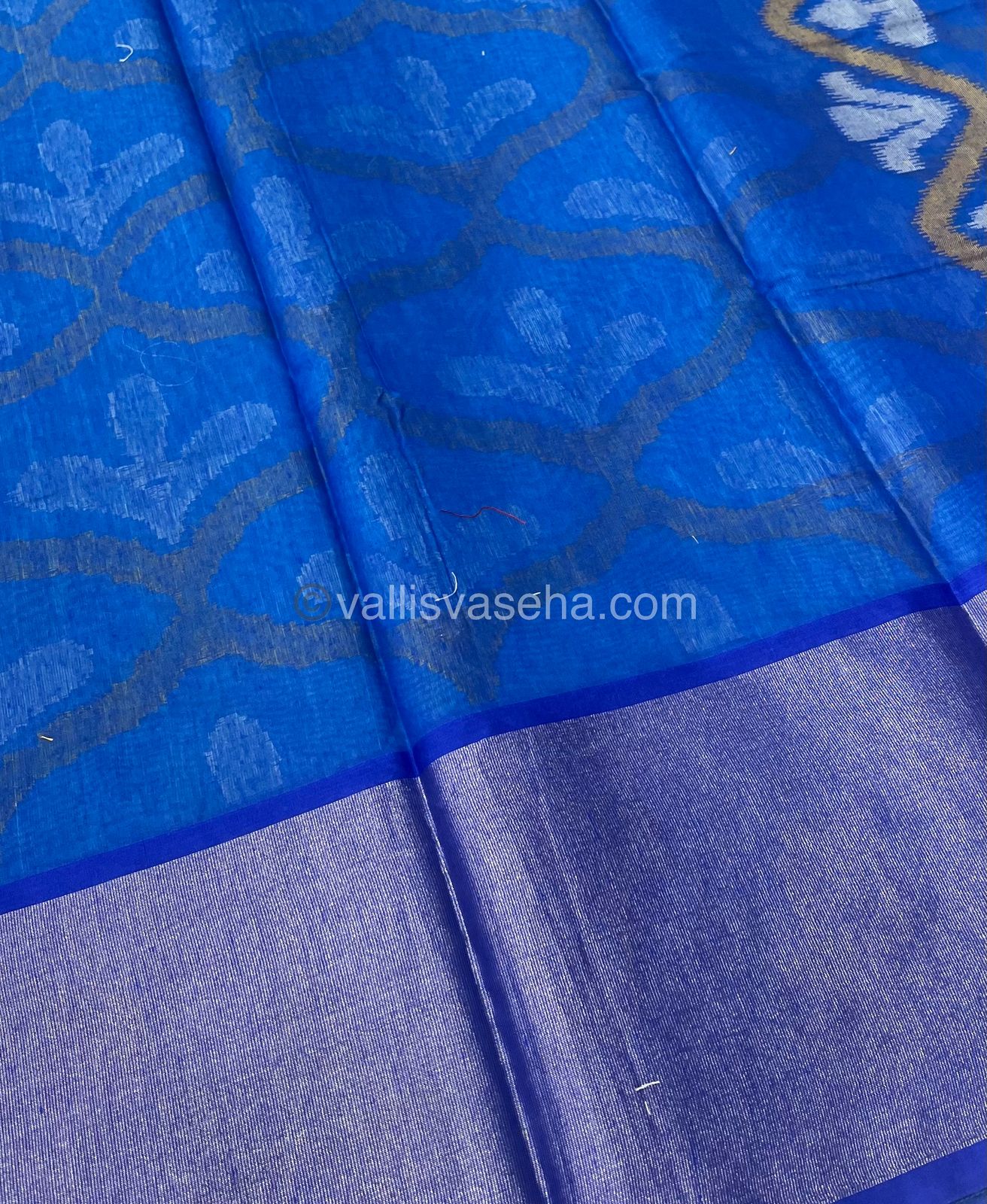 Banarasi Pochampally Weaving Semi Soft Cotton Saree - Light Blue with Blue - VVBPS001
