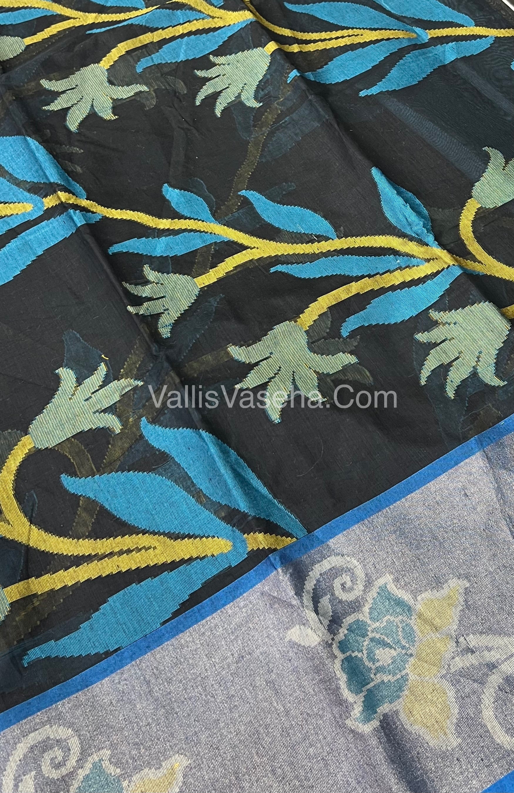 Banarasi Pochampally Weaving Semi Soft Cotton Saree - Black with Blue - VVBPS001