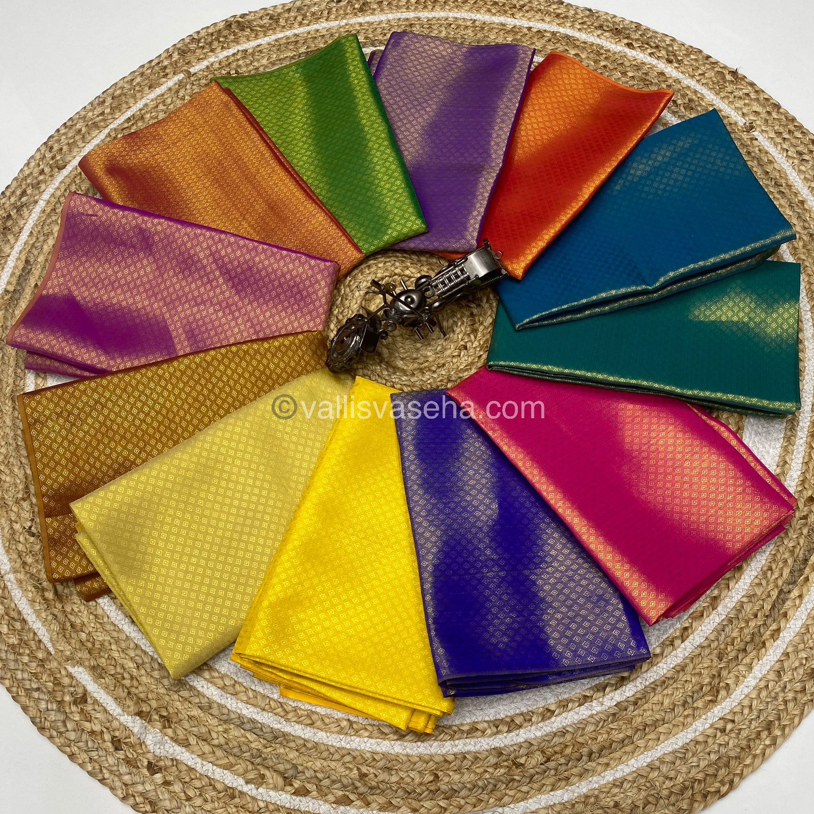 12 different shades with jacquard design all over the blouse . Soft and elegant - We can match with our sarees.Â