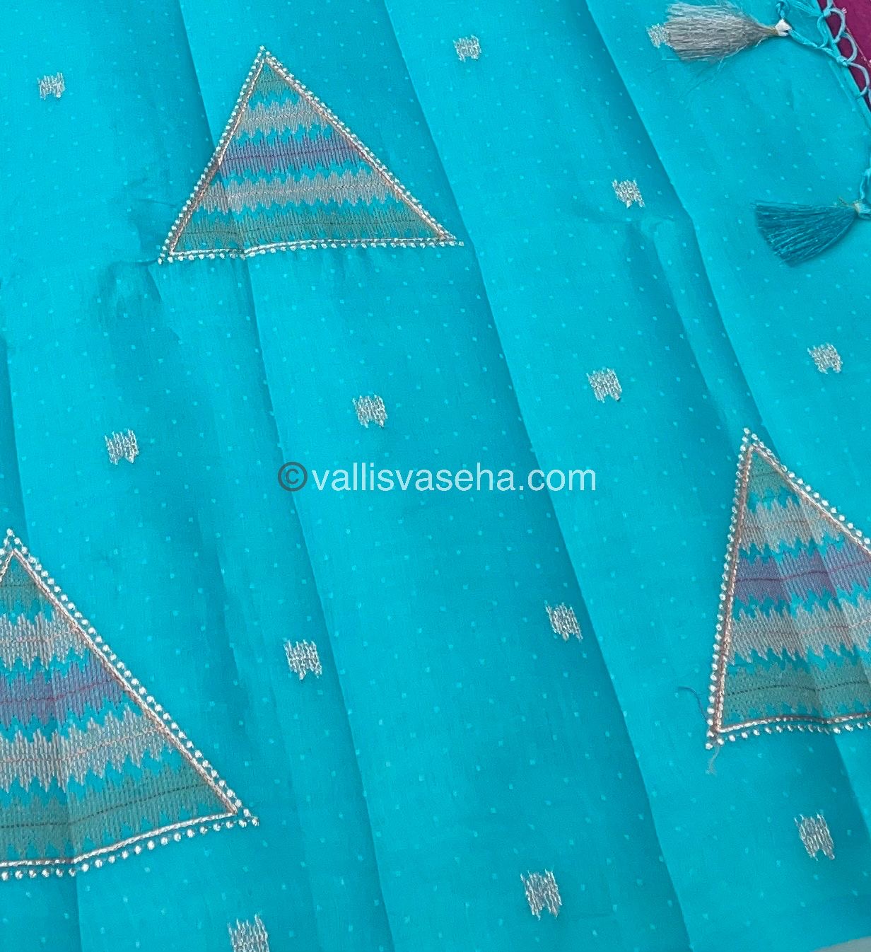 Stunning Butter Silk sarees - Borderless - All over Triangle Multiple color Zari weaving butta and with running Pallu and contrast small Zari Butta blouse .