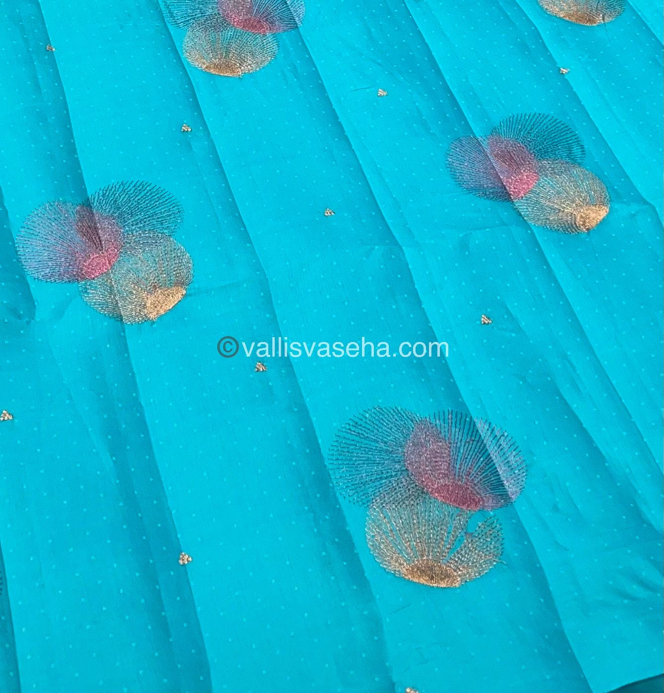 Stunning Butter Silk sarees - Borderless - All over Tri Circle Multiple color Zari weaving butta and with running Pallu and contrast small Zari Butta blouse .