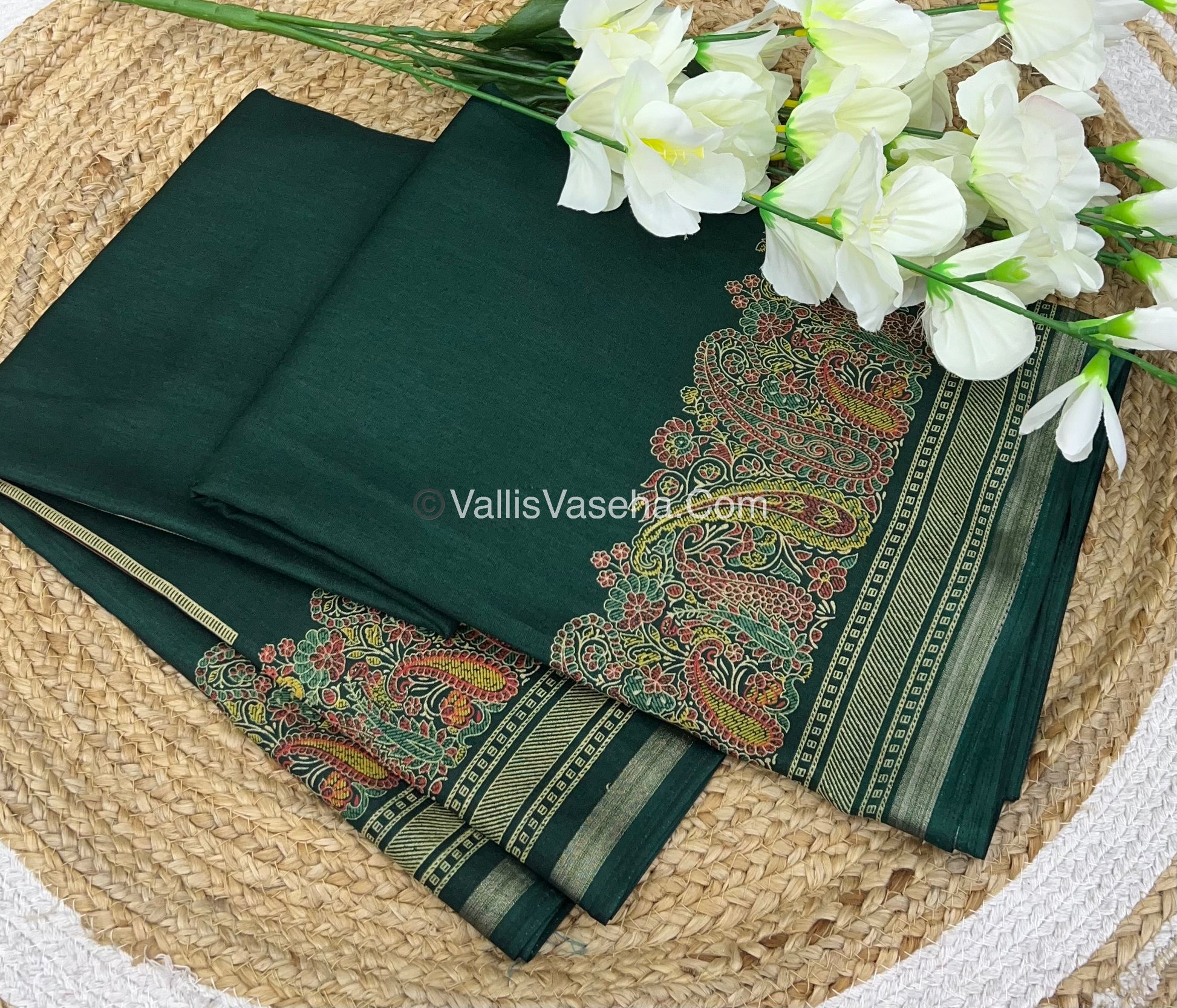 Semi Silk mixed Saree - Casual wear . Very soft texture .Body Plain with Beautiful Mango printed border design and thin strip of border , printed Pallu and printed blouse.