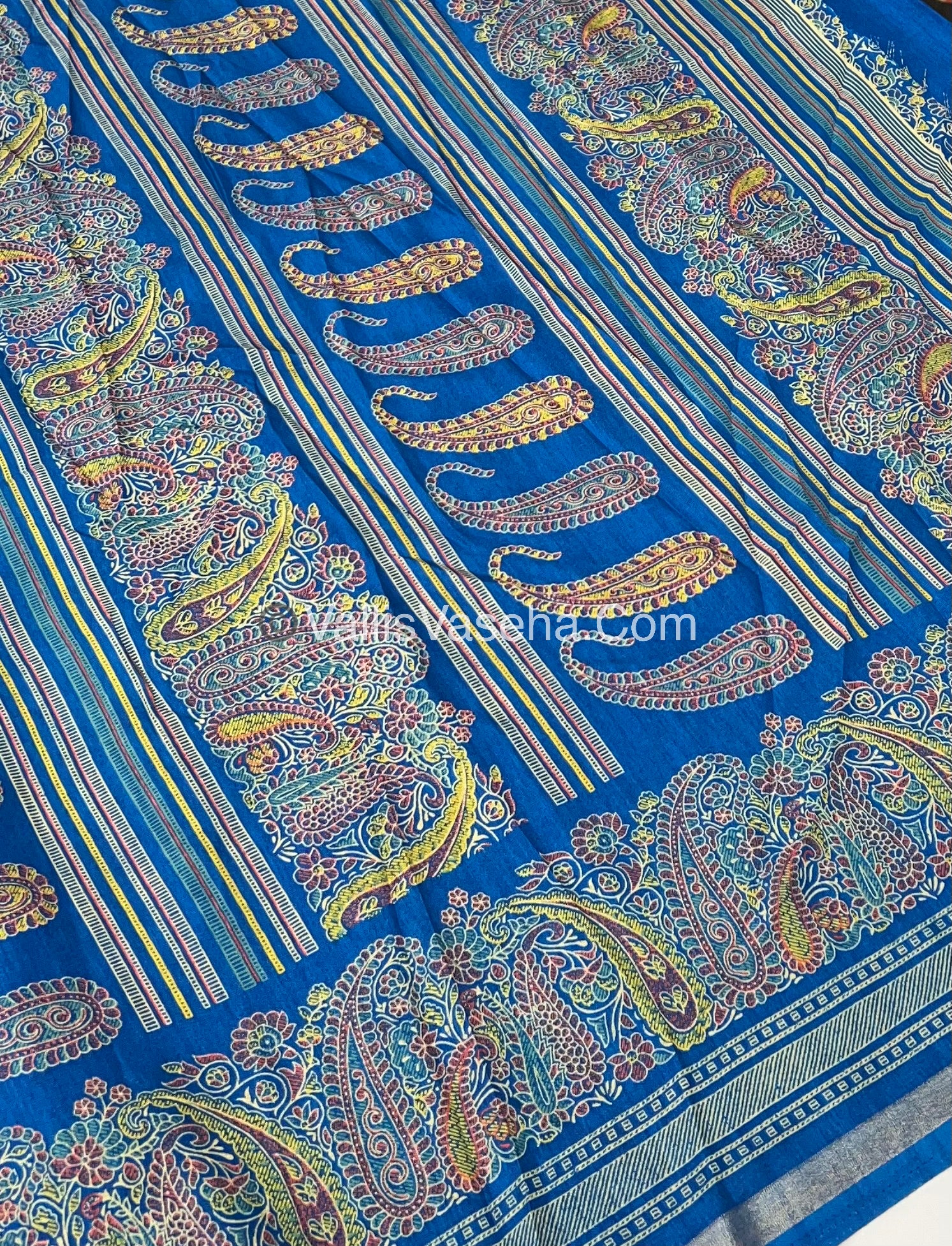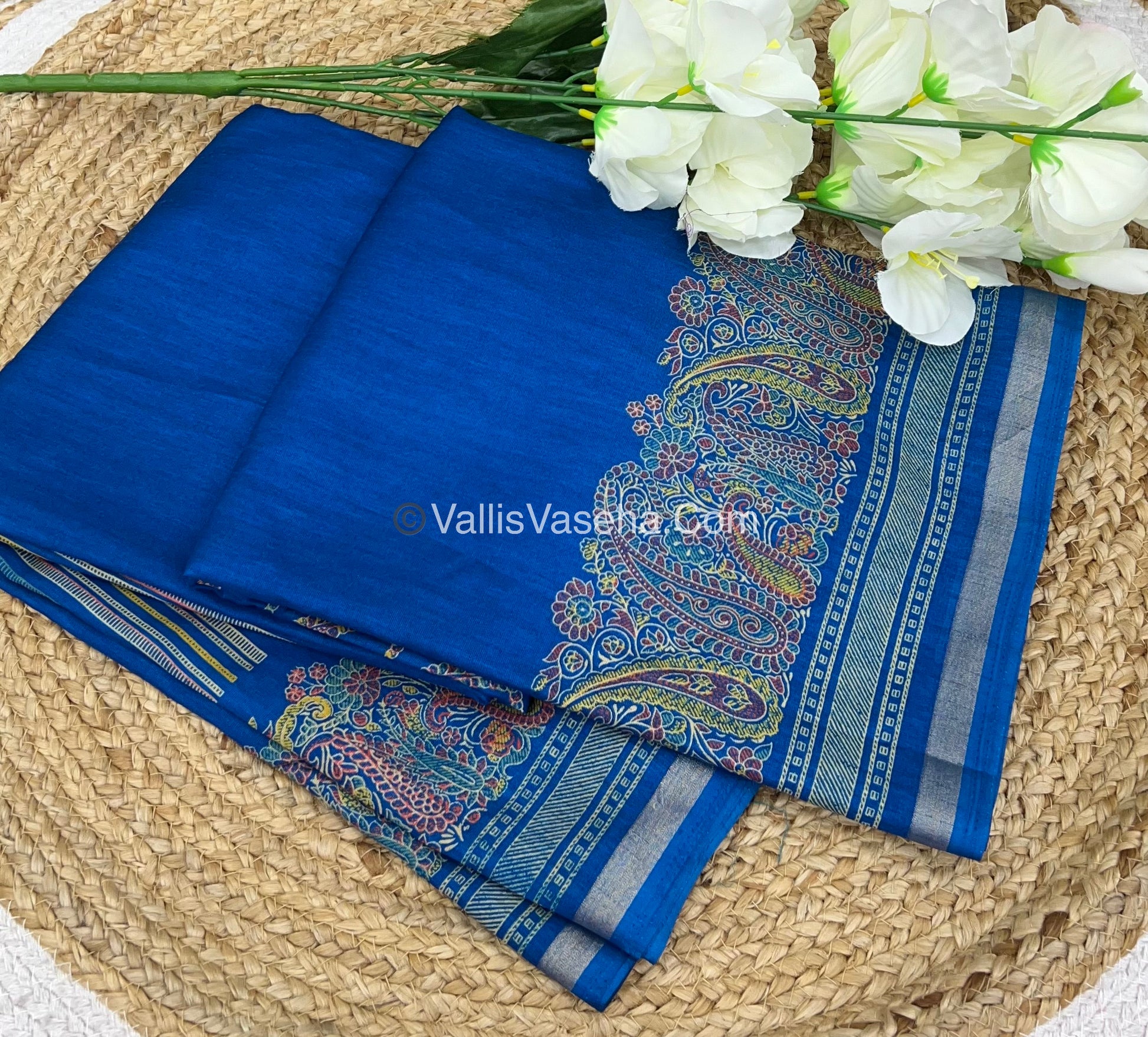 Semi Silk mixed Saree - Casual wear . Very soft texture .Body Plain with Beautiful Mango printed border design and thin strip of border , printed Pallu and printed blouse.