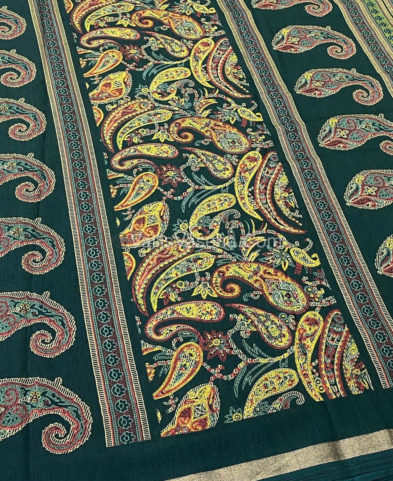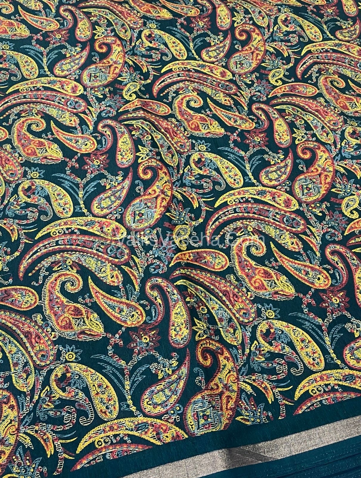 Semi Silk mixed Saree - Casual wear . Very soft texture . Beautiful Mango printed design , printed Pallu and blouse.