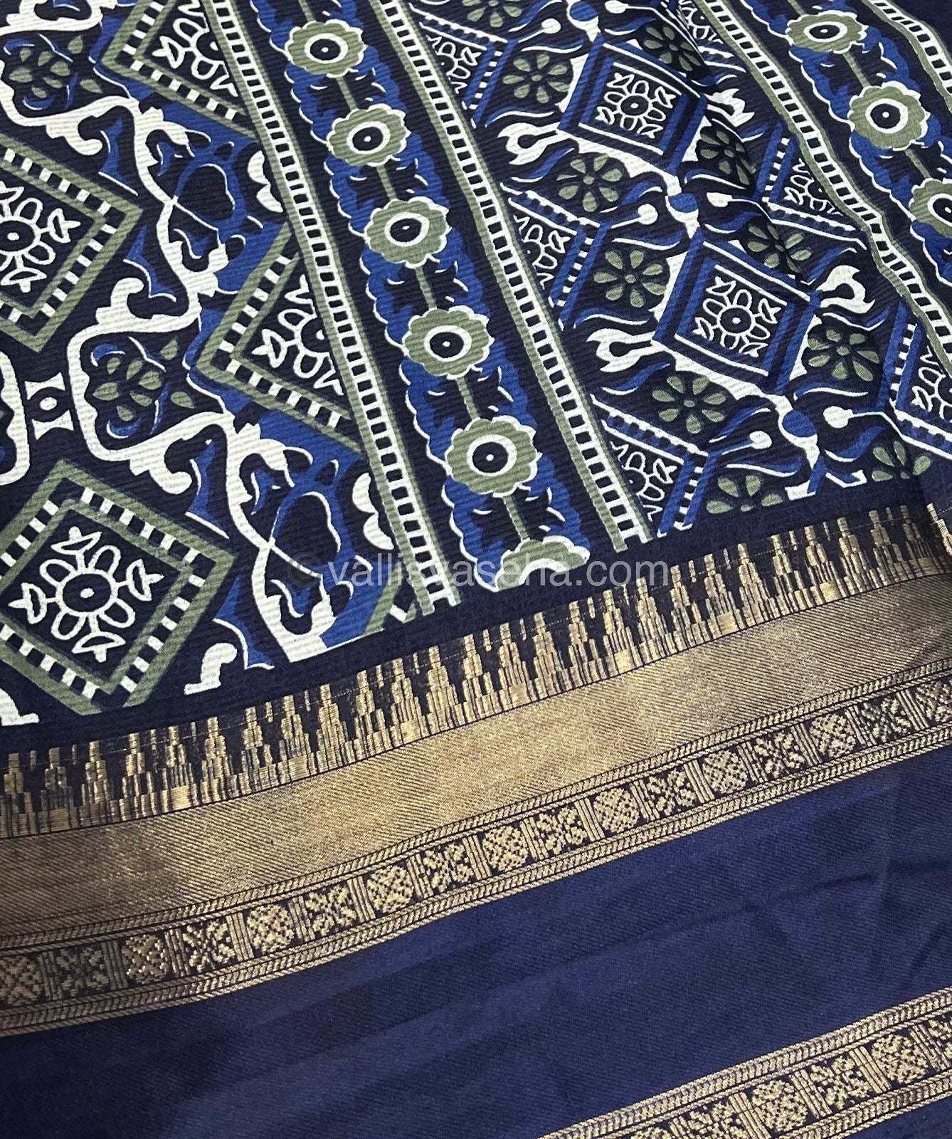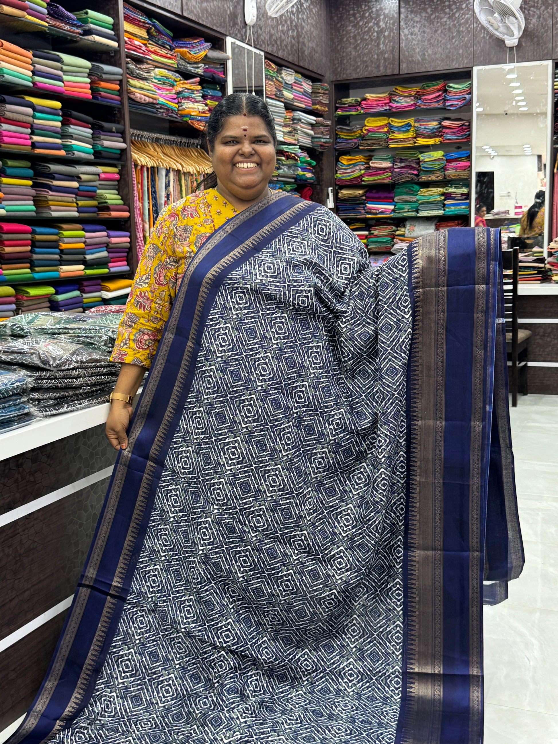 Semi Silk mixed cotton Saree - Casual wear . Very soft texture .Beautiful Printed saree, printed Pallu and plain blouse with border for sleeves