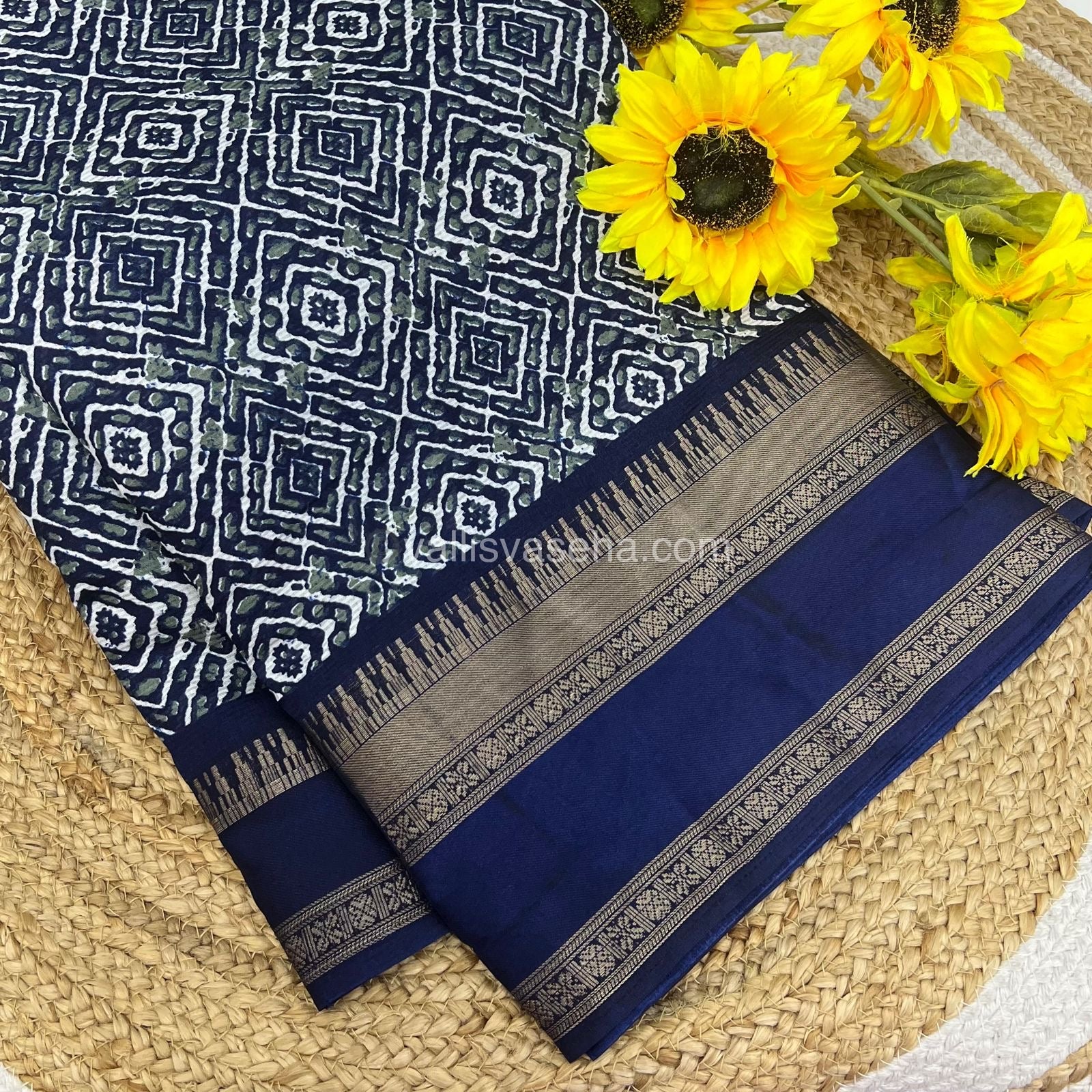 Casual Wear Saree - Fancy Mixed Cotton - Blue Shade - VVFMC002