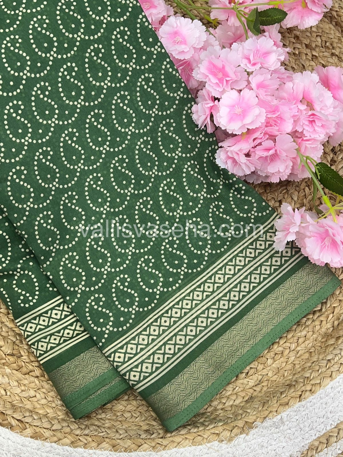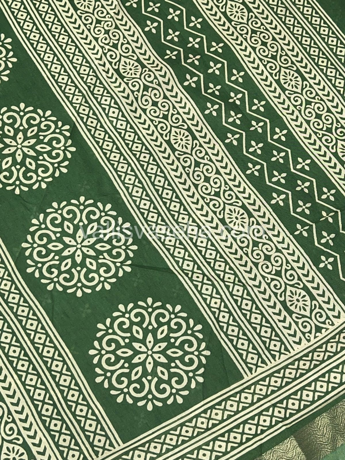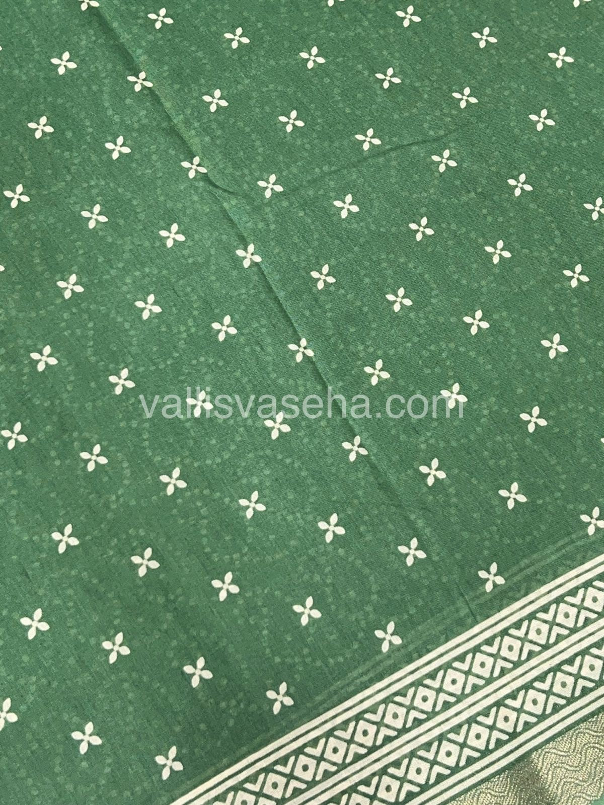 Semi Silk mixed muslin cotton Saree - Casual wear . Very soft texture . All over printed pattern with thin strip of border , printed Pallu and printed blouse.