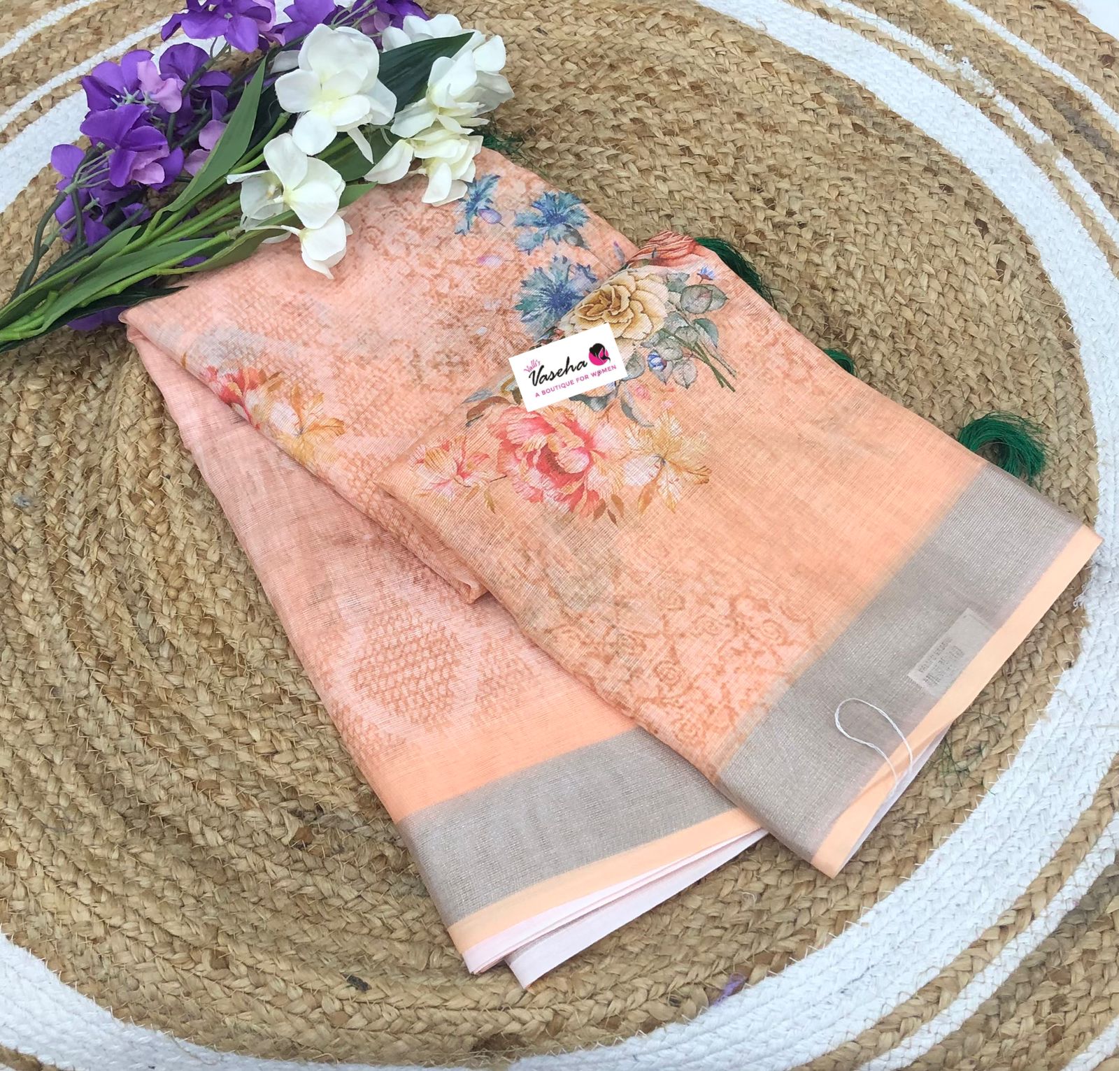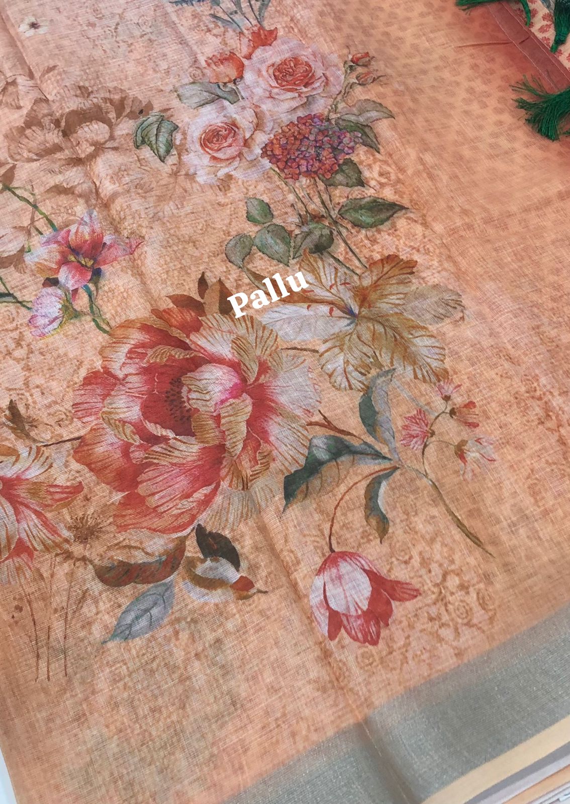 Soft 90 counts linen cotton with floral digital prints and beautiful Jahllar attached to the Pallu With Printed Blouse. Very elegant and special soft finished .