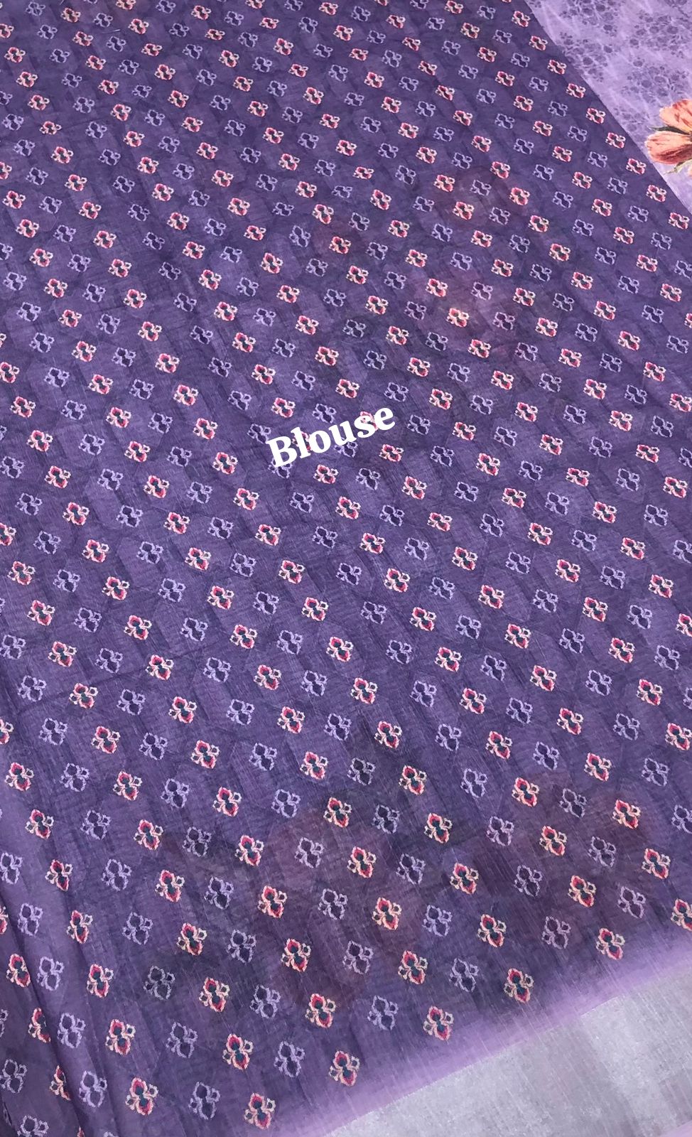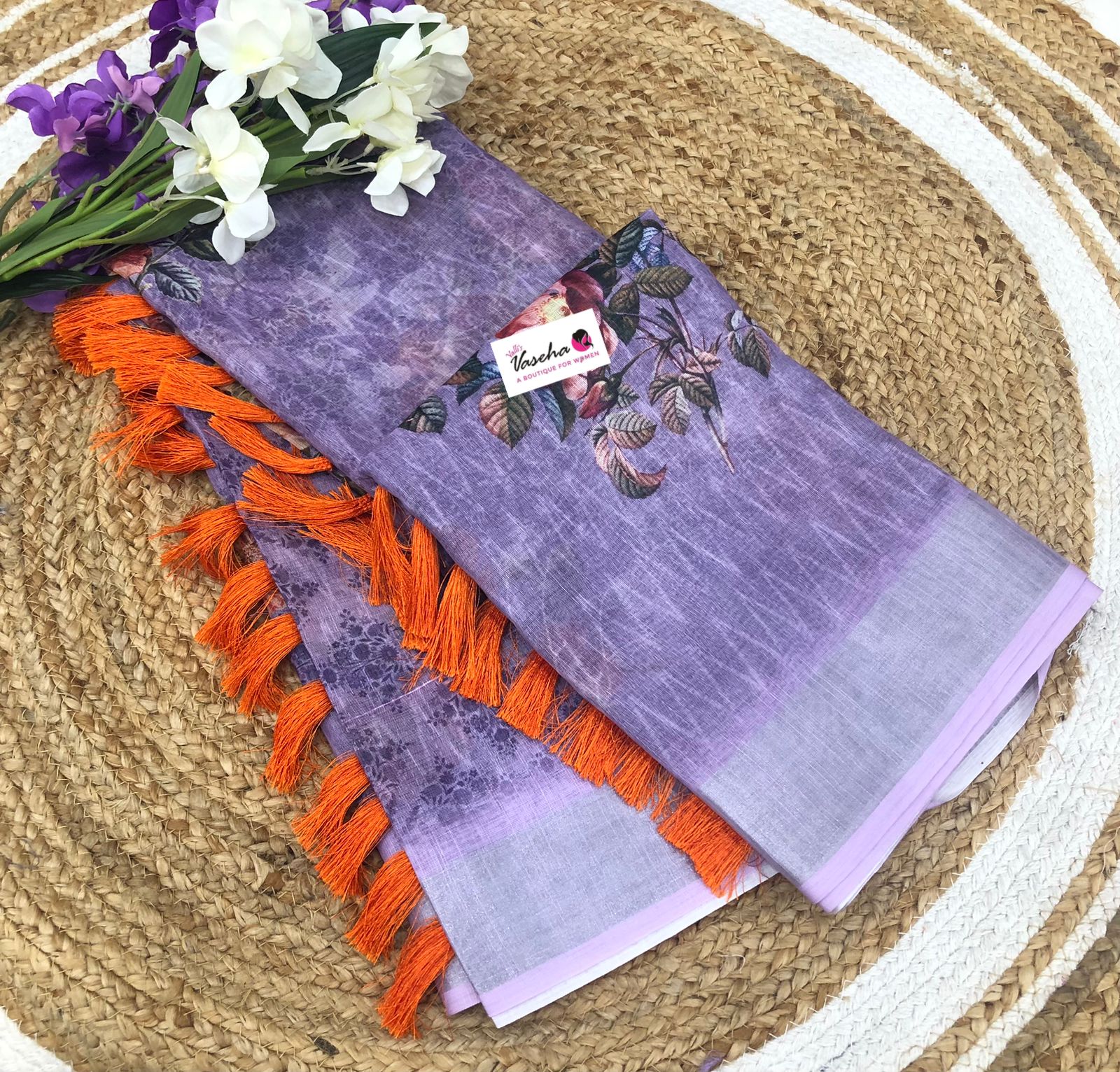 Soft 90 counts linen cotton with floral digital prints and beautiful Jahllar attached to the Pallu With Printed Blouse. Very elegant and special soft finished .