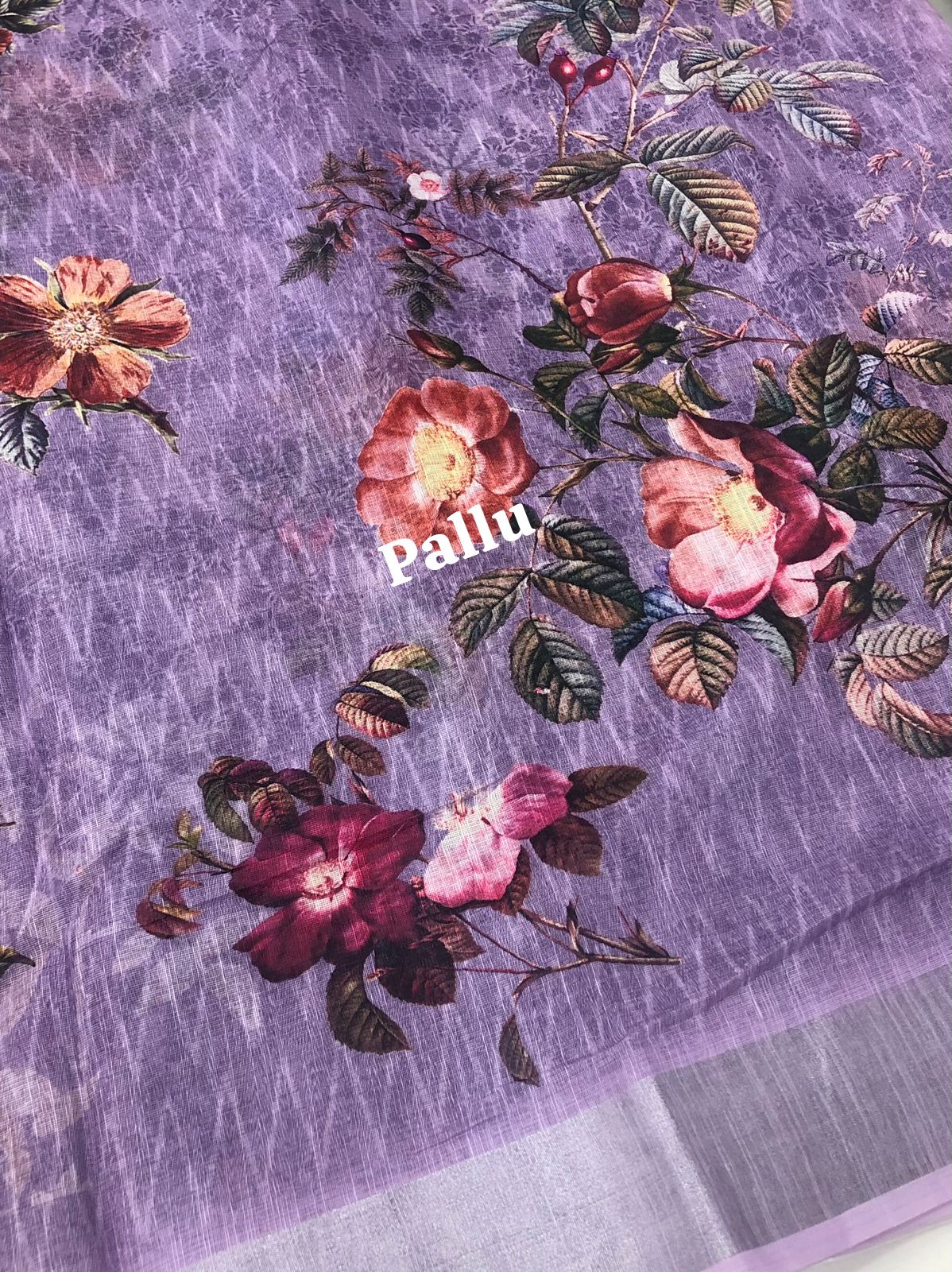 Floral Linen Cotton Saree - Dark Lavender Shade