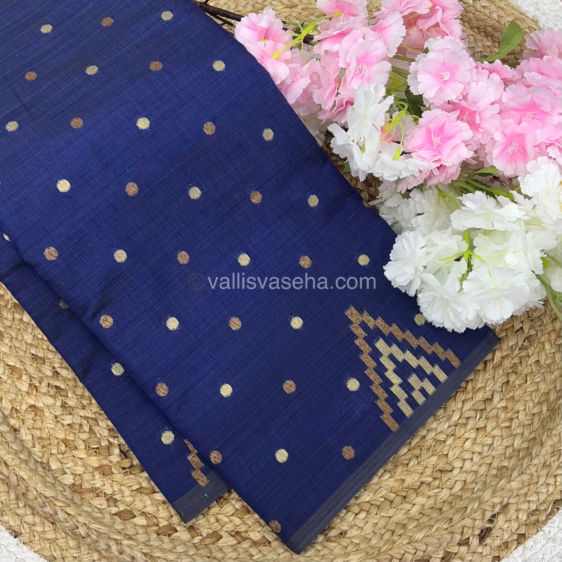 Cherry Tussar - Semi Tussar Silk - Navy Blue Shade - VVSTS009