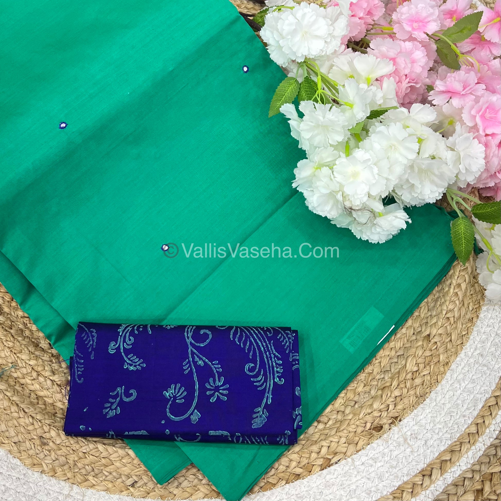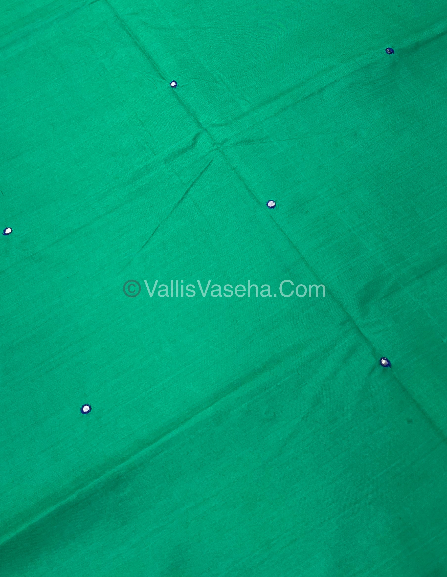 South Mixed Cotton - Mirror Work Embroidery - Green With Violet - VVPCM002