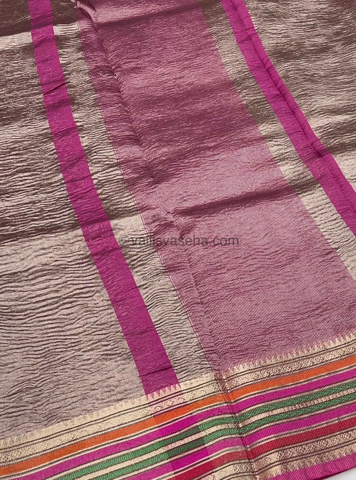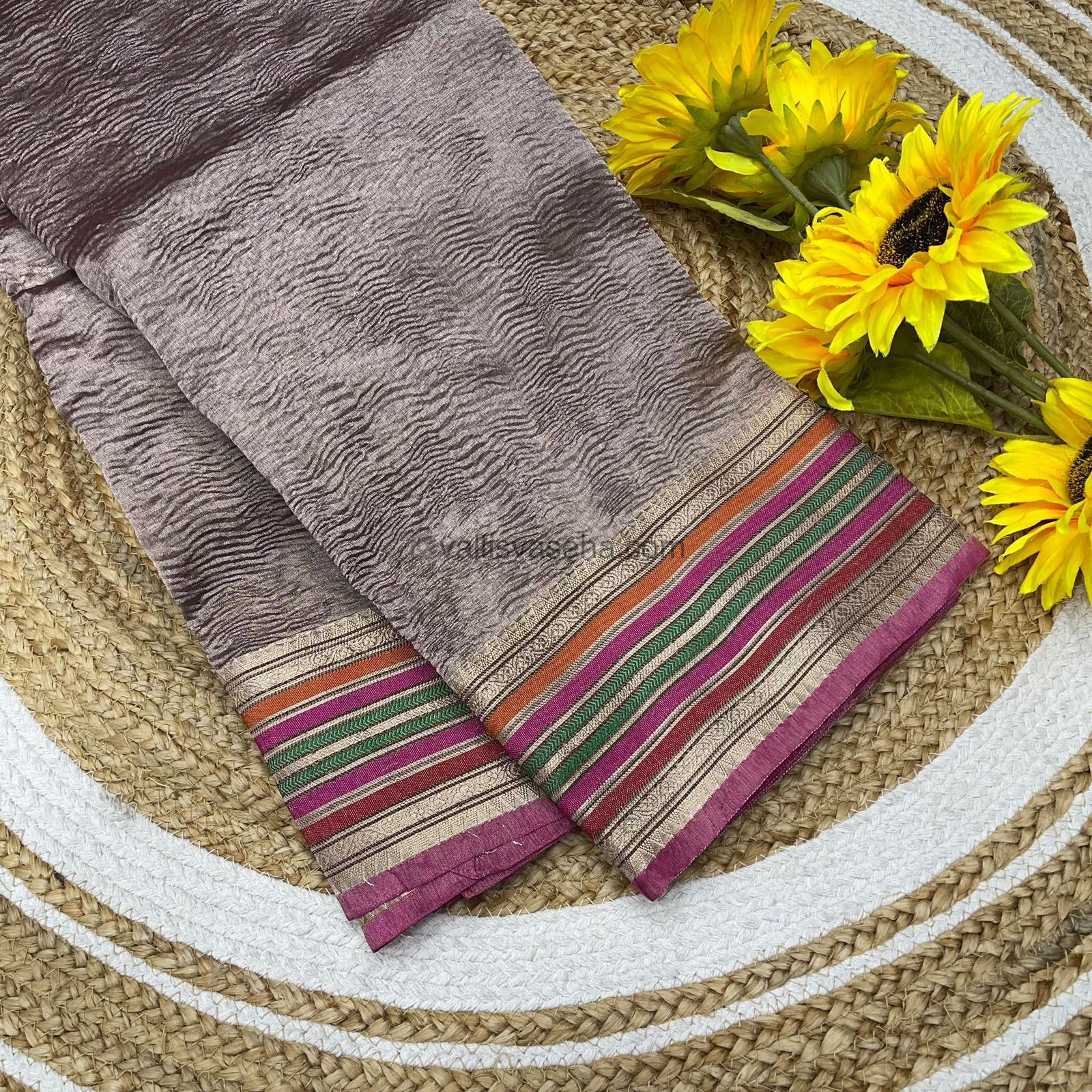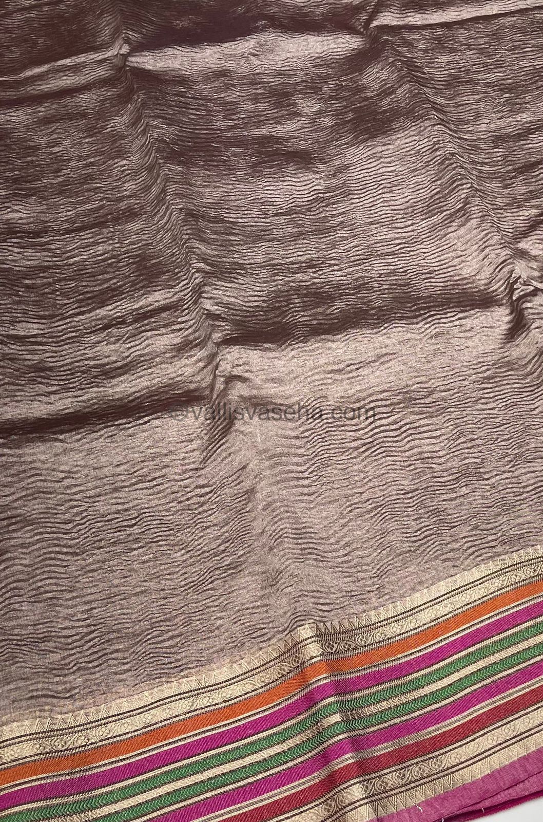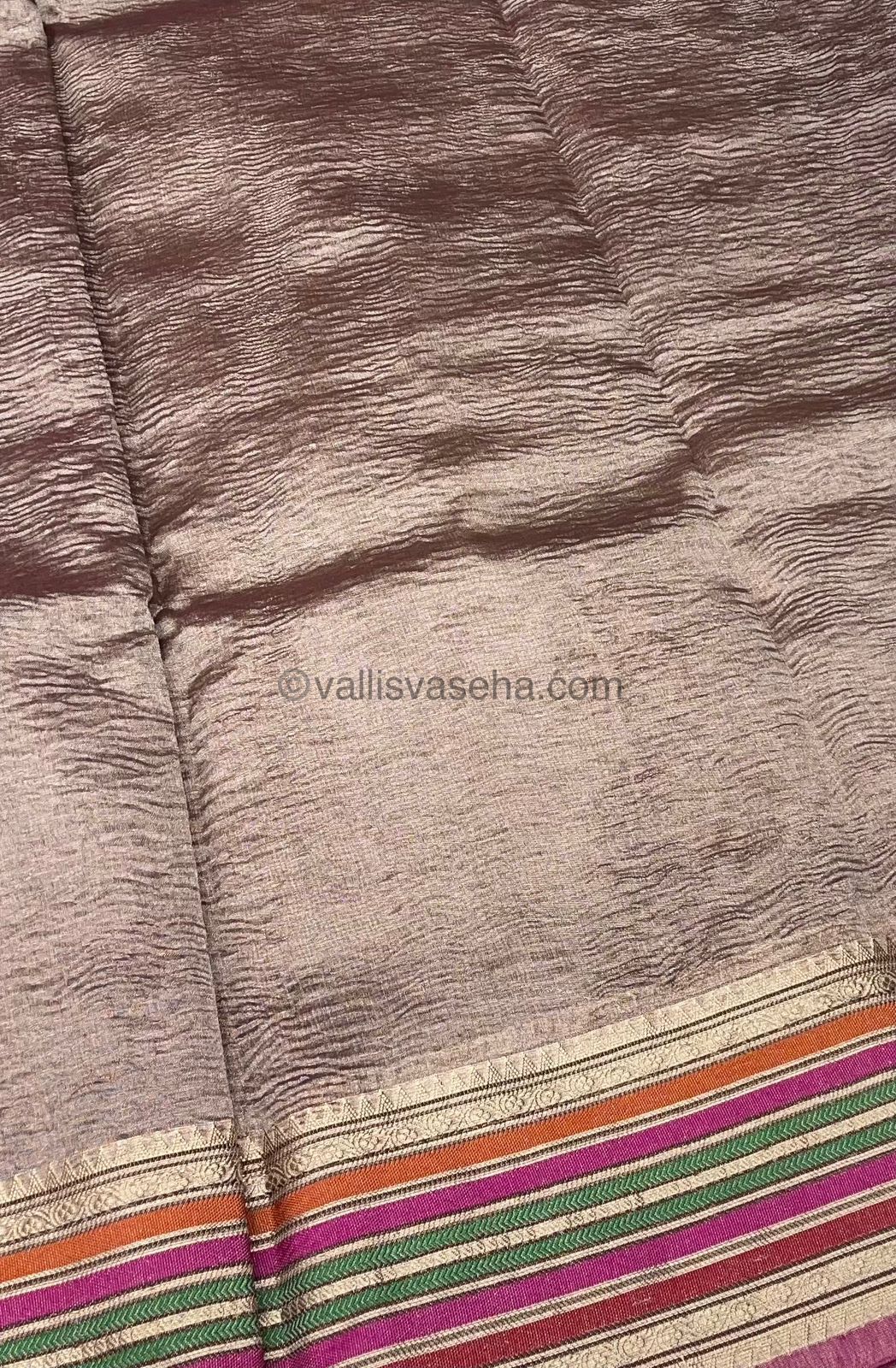 Crushed Tissue Saree - Light Grey mixed chocolate Shade - VVCTS001