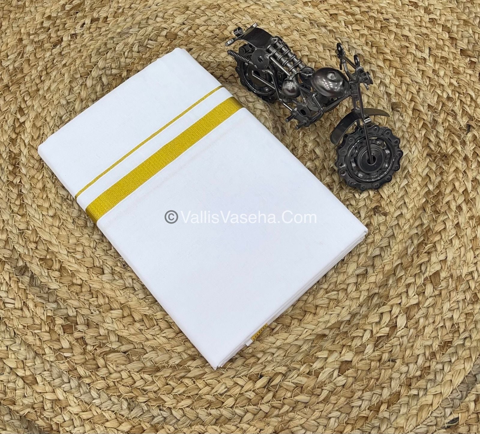 Dhoti - White - Gold Border - Double Layer - VVDH001