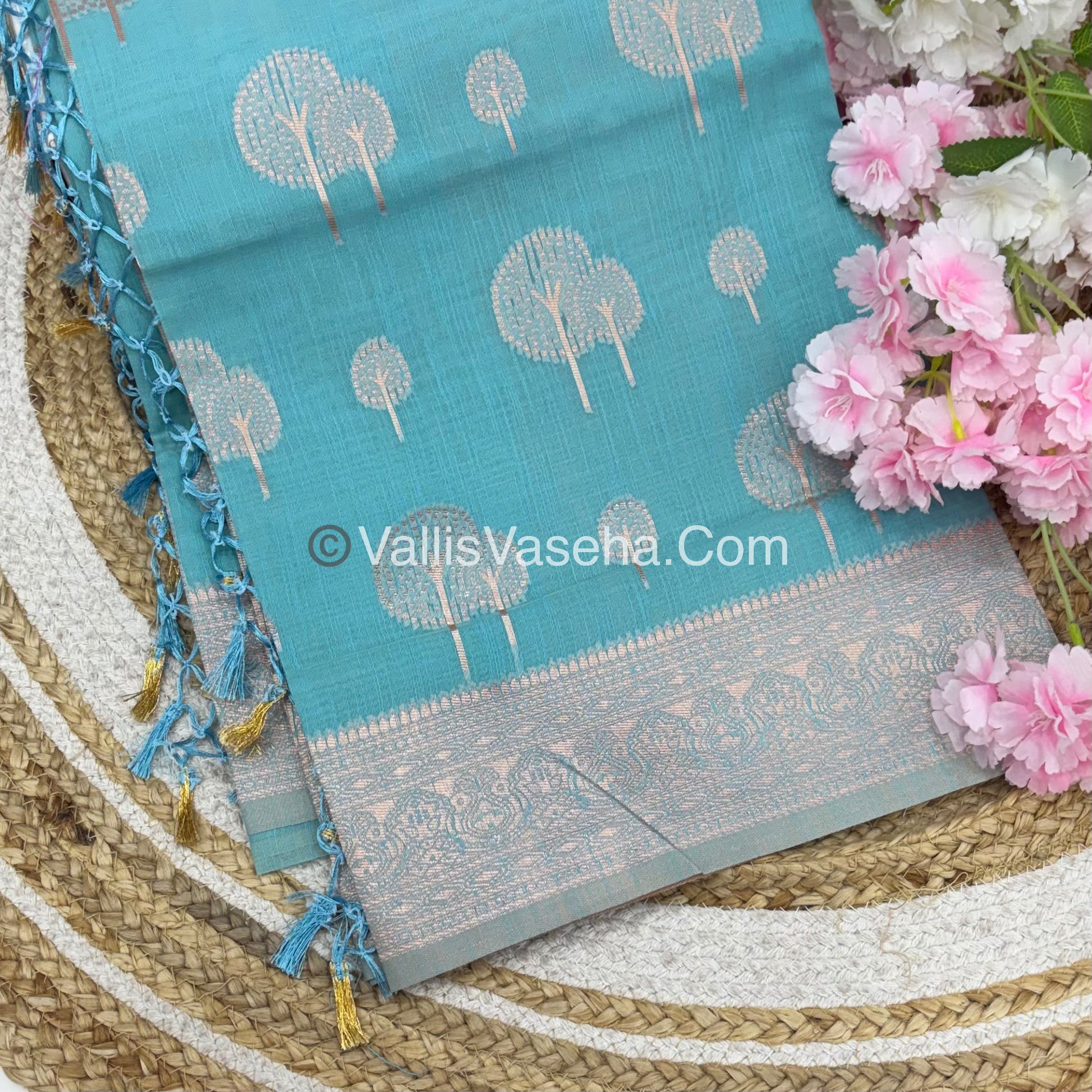 Saree - Casual wear - Fancy Saree - All over double leaf Butta - Banarasi Border - Very soft texture - Grand Pallu and Plain blouse with border for sleeves .