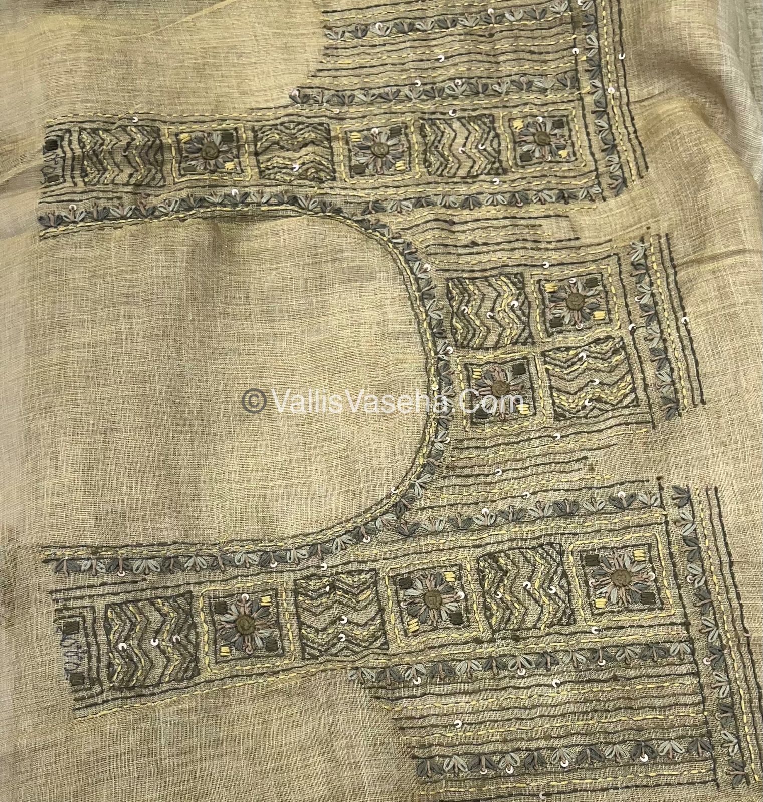French Knot - Pure Tissue Linen Saree - All over beautiful French knot and sequence work embroidery in saree and pallu & Same French knot work given for hand sleeves and back neck design too - Occasional wear / Party wear / Office wear.