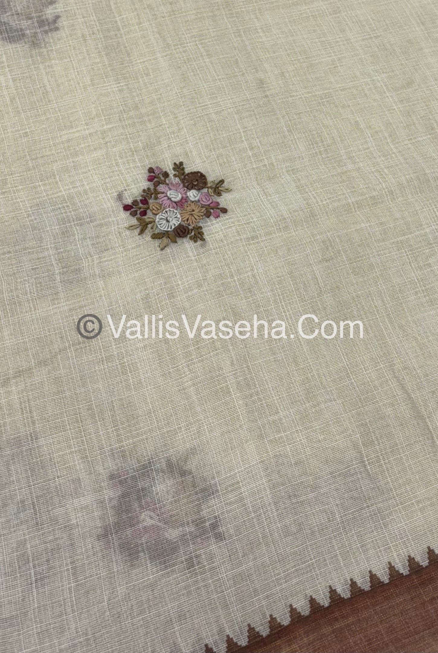 French Knot - Tissue Saree - Cream With Brown Shade - VVLFN006