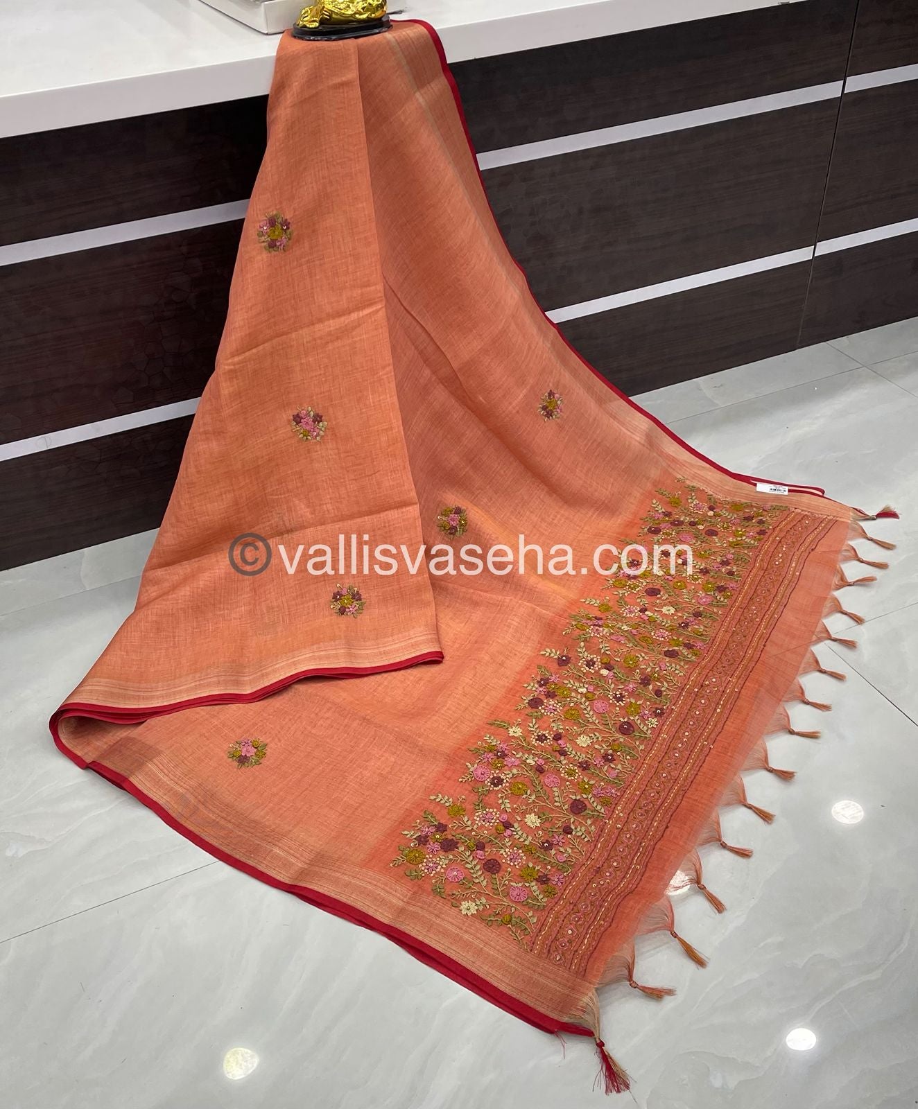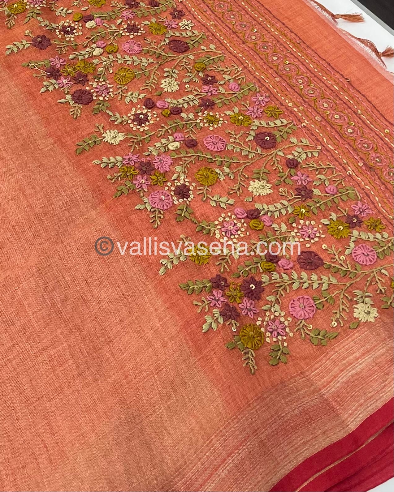French Knot - Tissue Saree - Orange Shade - VVLFN001