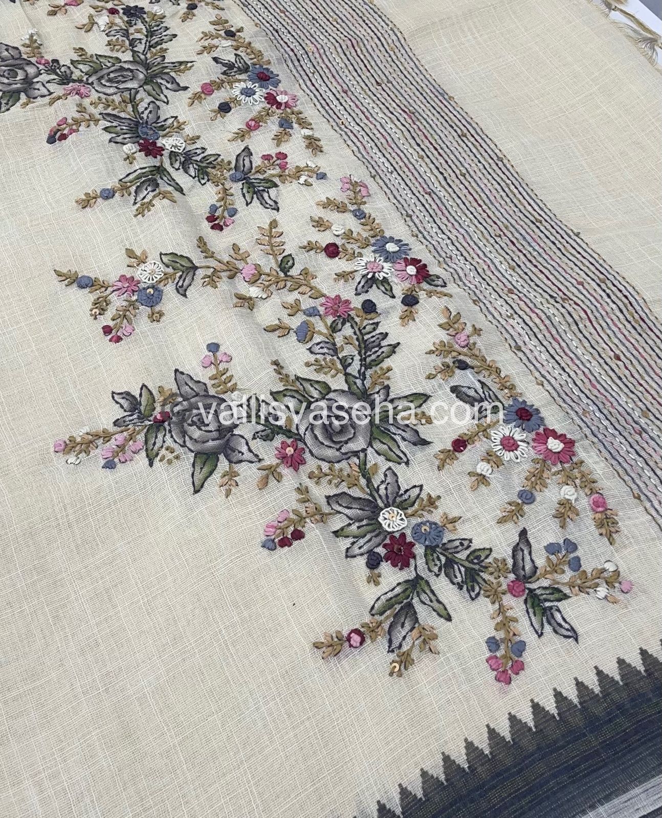 French Knot - Pure Tissue Linen Saree - All over beautiful French knot and sequence work embroidery in saree and pallu & Same French knot work given for hand sleeves too - Occasional wear…