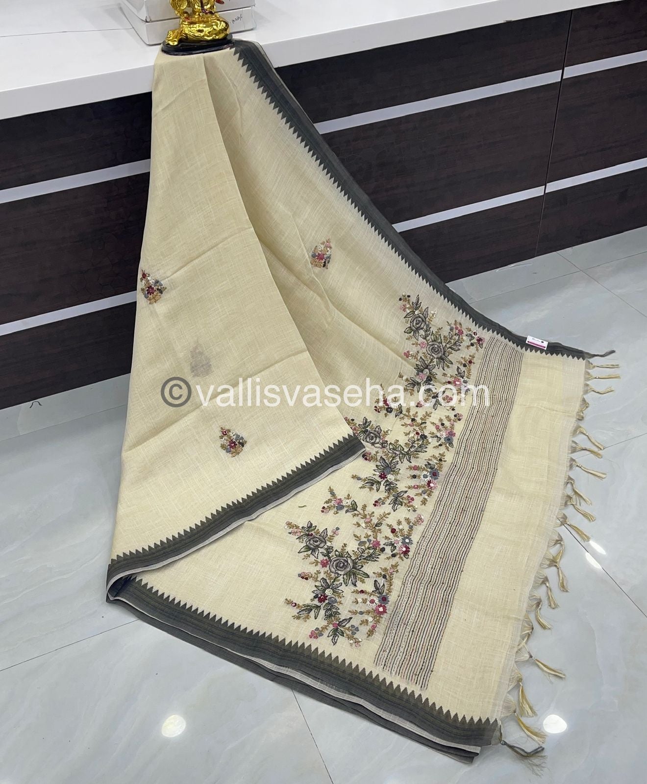 French Knot - Tissue Saree - Cream With Grey Shade - VVLFN001