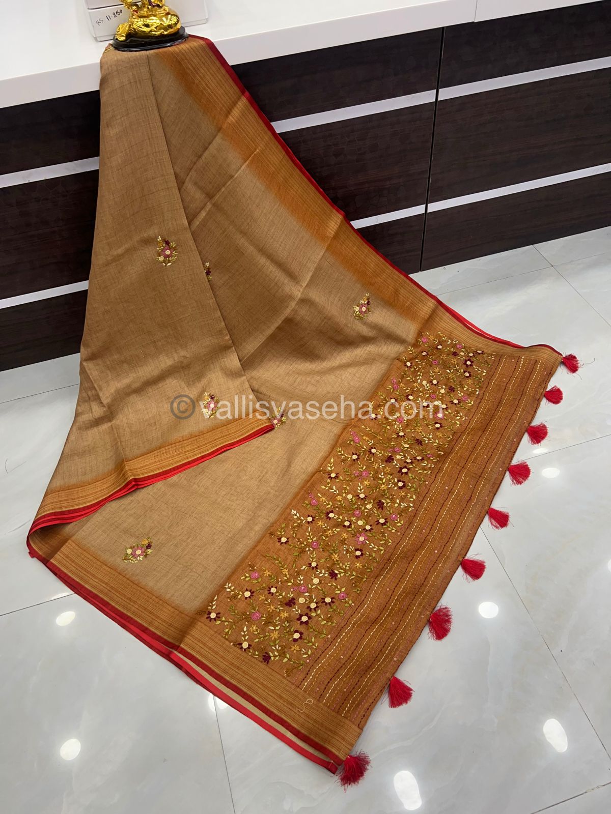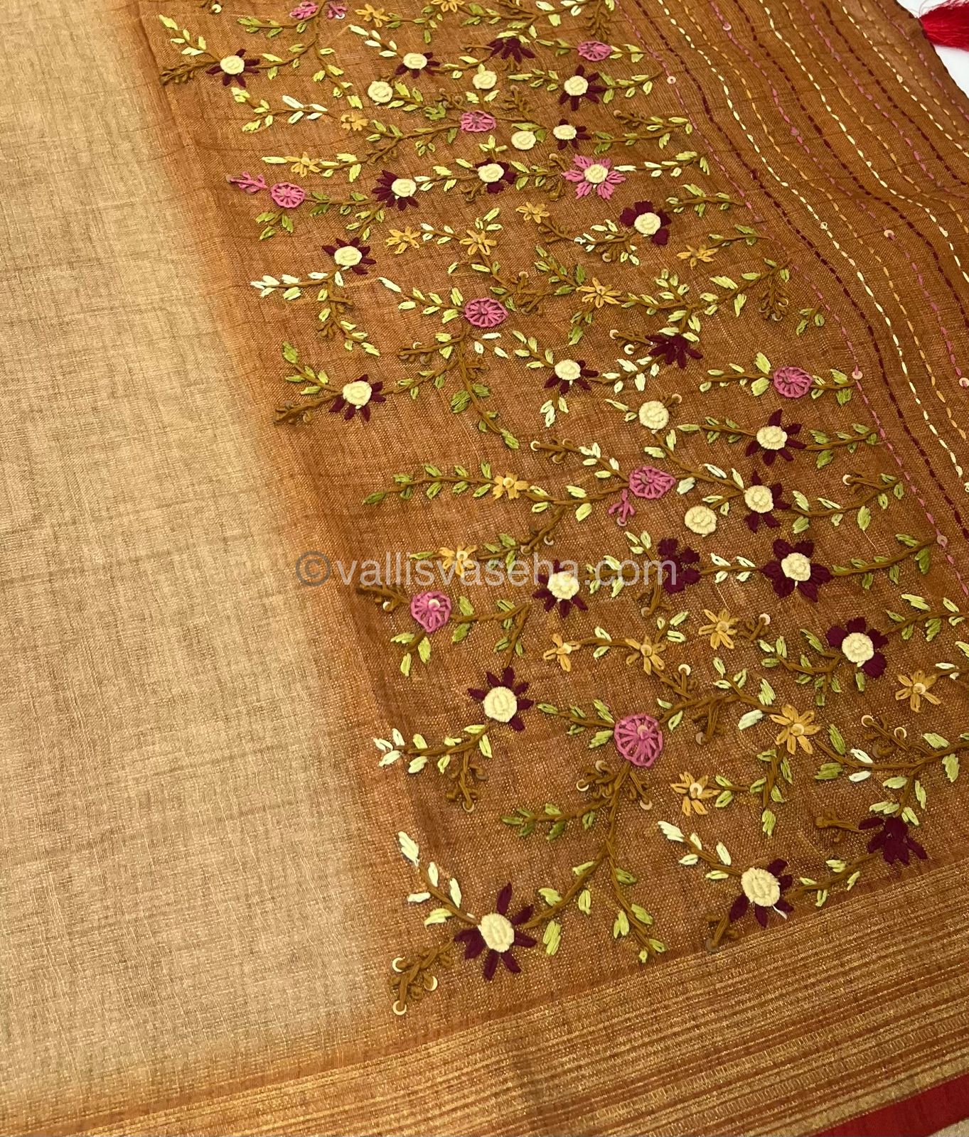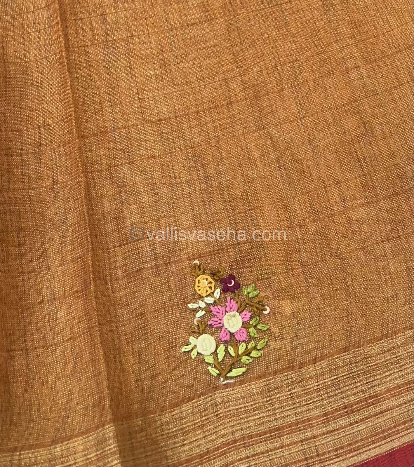 French Knot - Tissue Saree - Dark Chiku Shade - VVLFN002