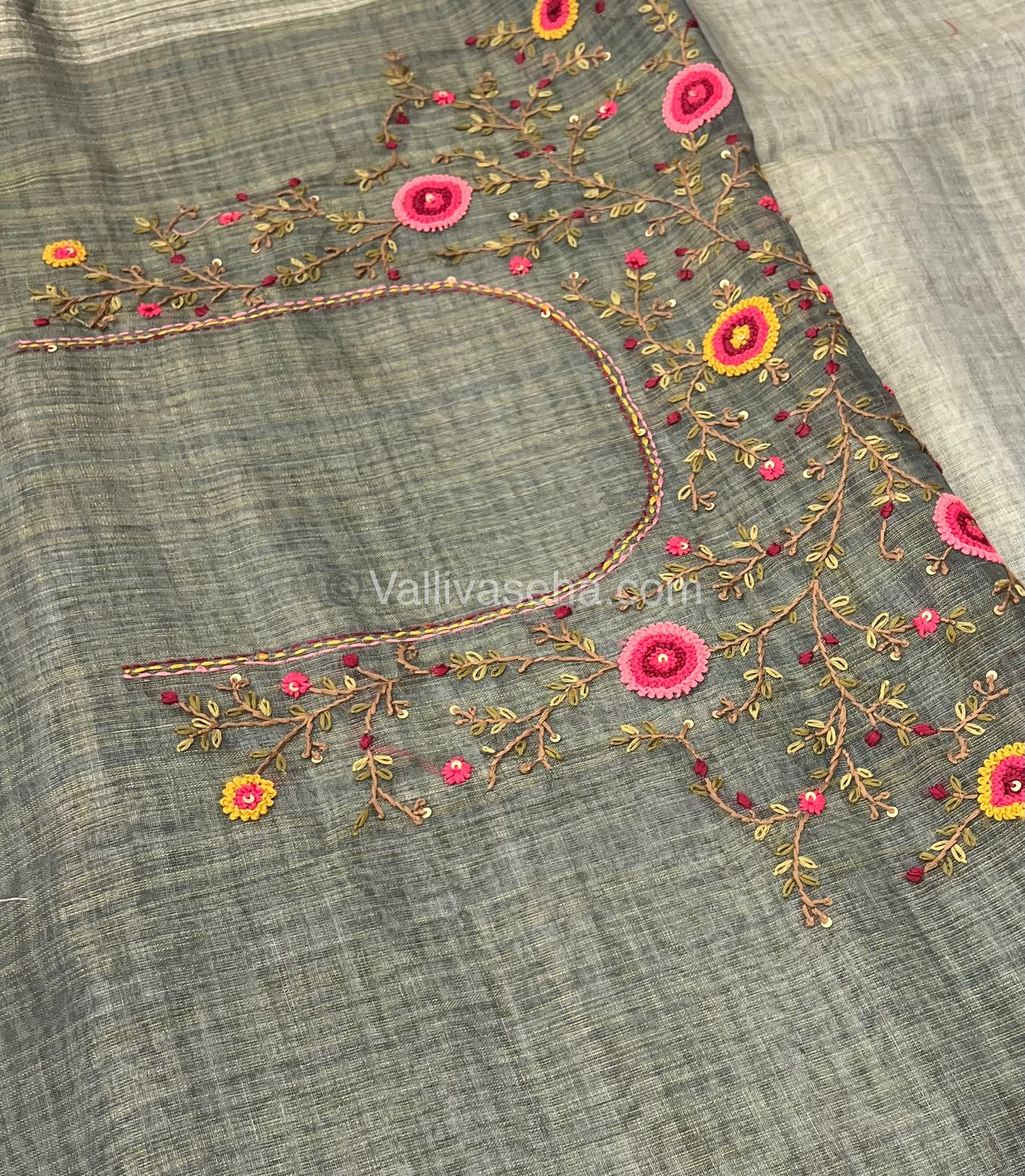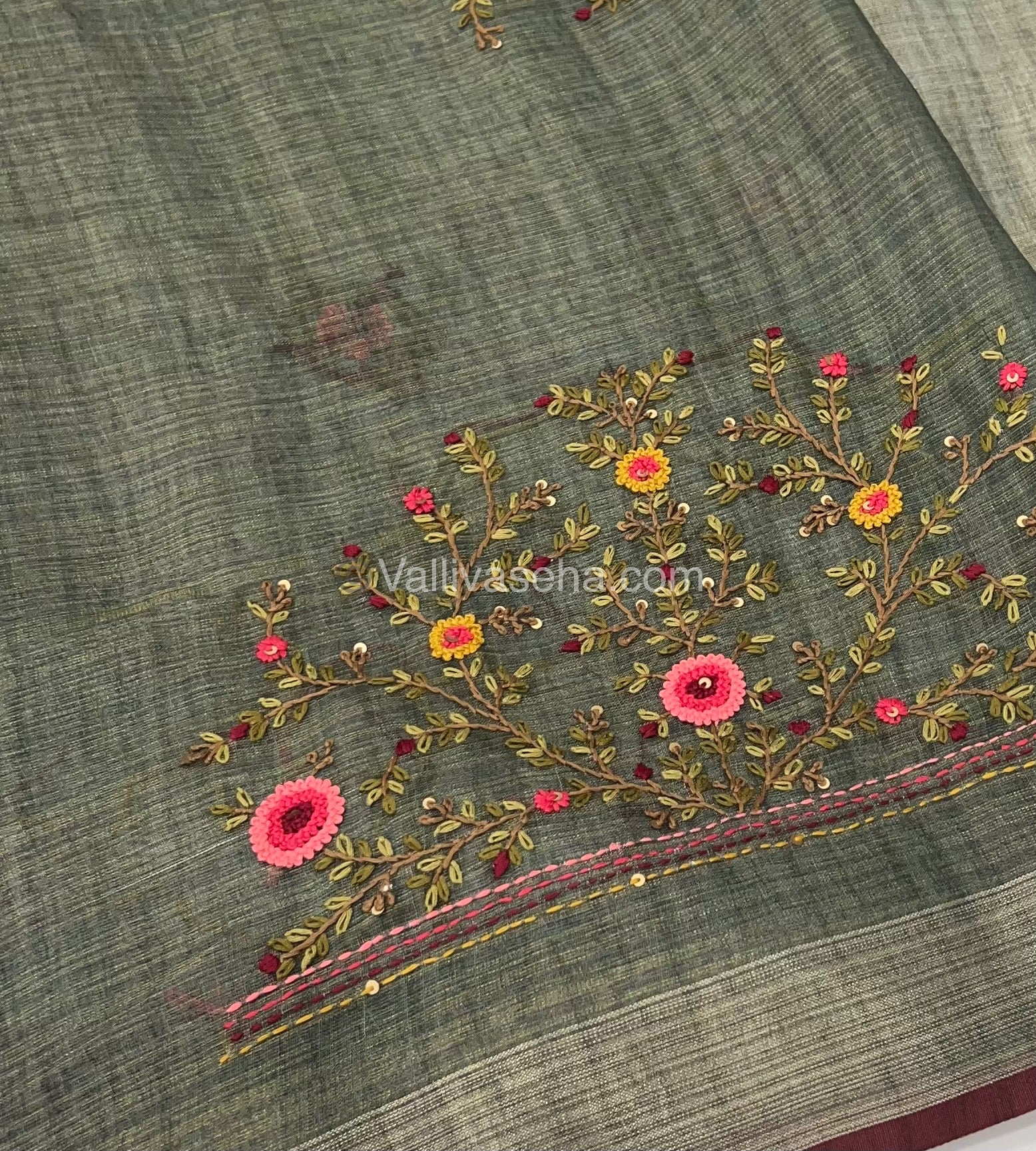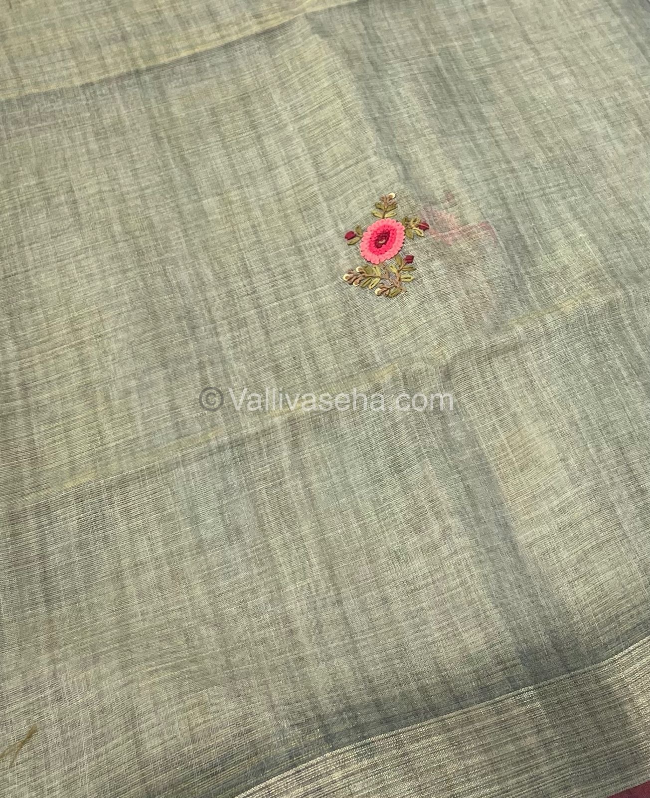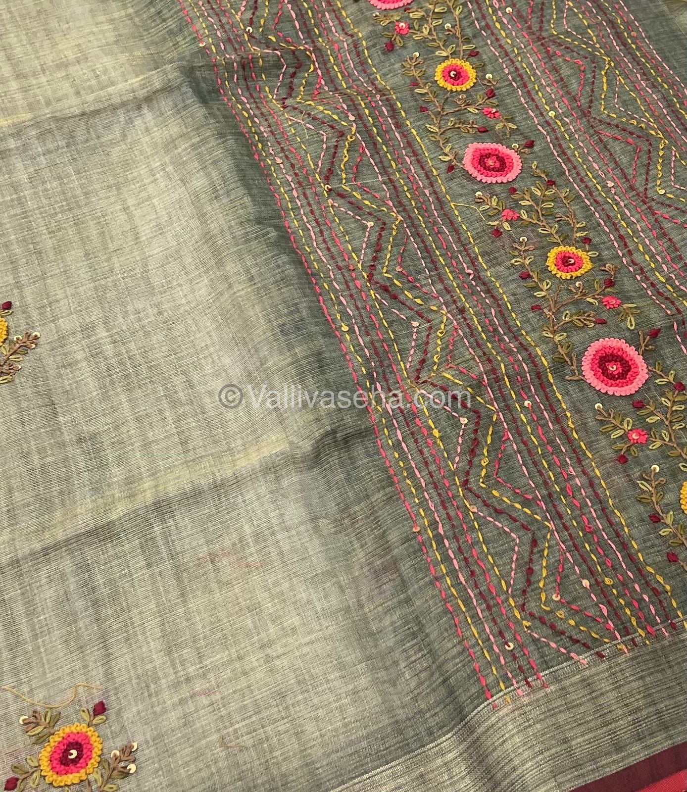 French Knot - Pure Tissue Linen Saree - All over beautiful French knot and sequence work embroidery in saree and pallu & Same French knot work given for hand sleeves too - Occasional wear…