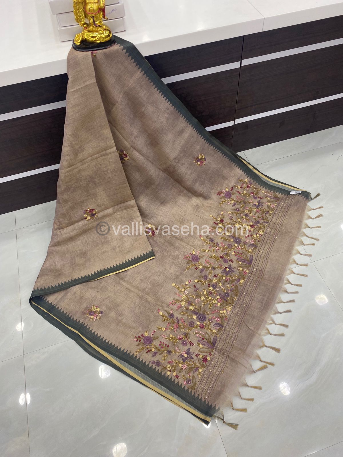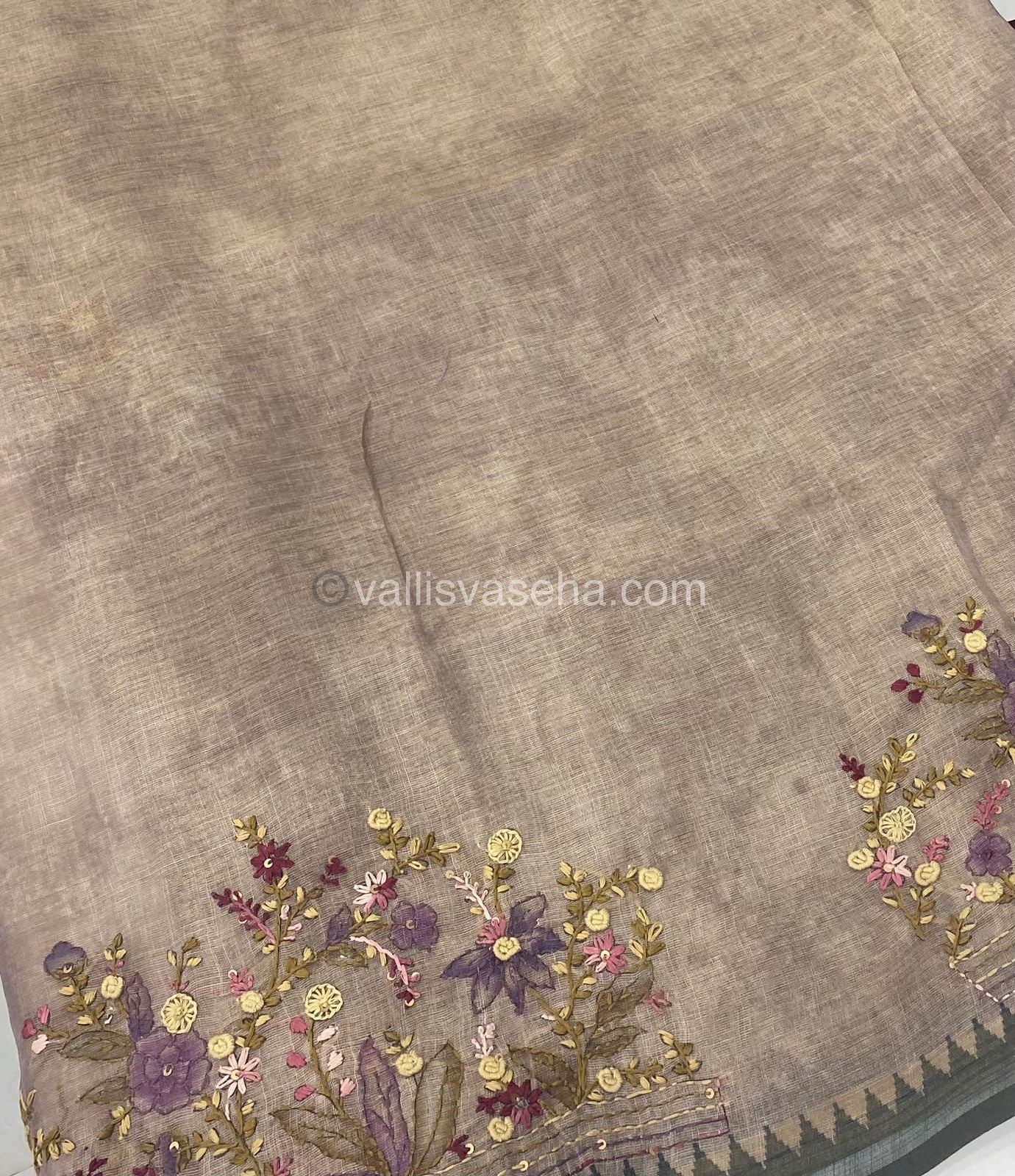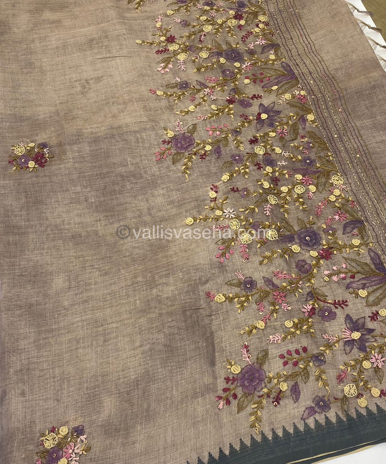 French Knot - Pure Tissue Linen Saree - All over beautiful French knot and sequence work embroidery in saree and pallu  & Same French knot work given for hand sleeves too - Occasional wear…