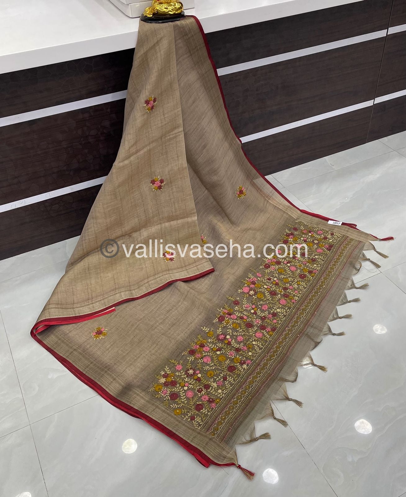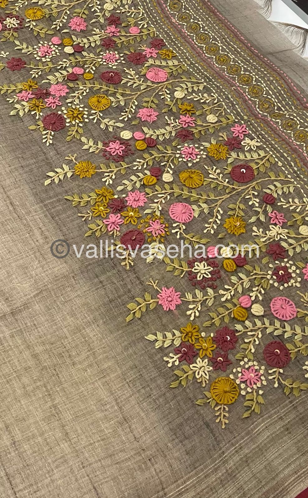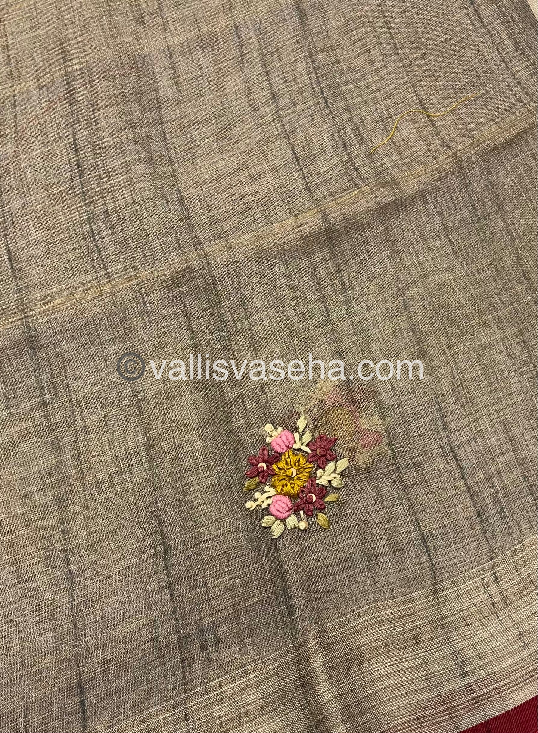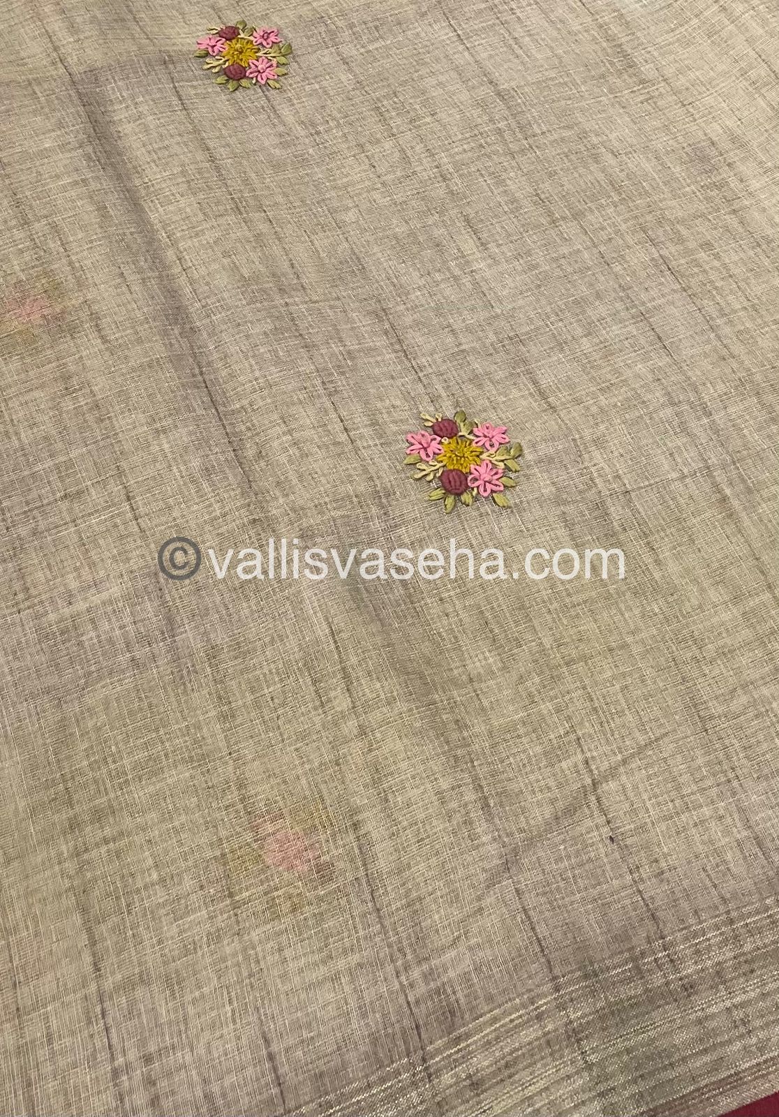 French Knot - Pure Tissue Linen Saree - All over beautiful French knot and sequence work embroidery in saree and pallu & Same French knot work given for hand sleeves too - Occasional wear…