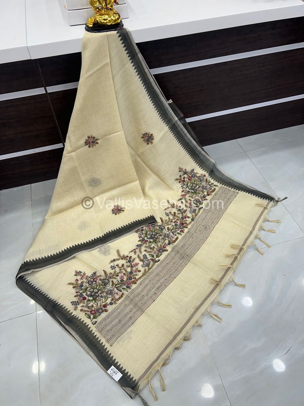 French Knot - Tissue Saree - Cream With Grey Shade - VVLFN001