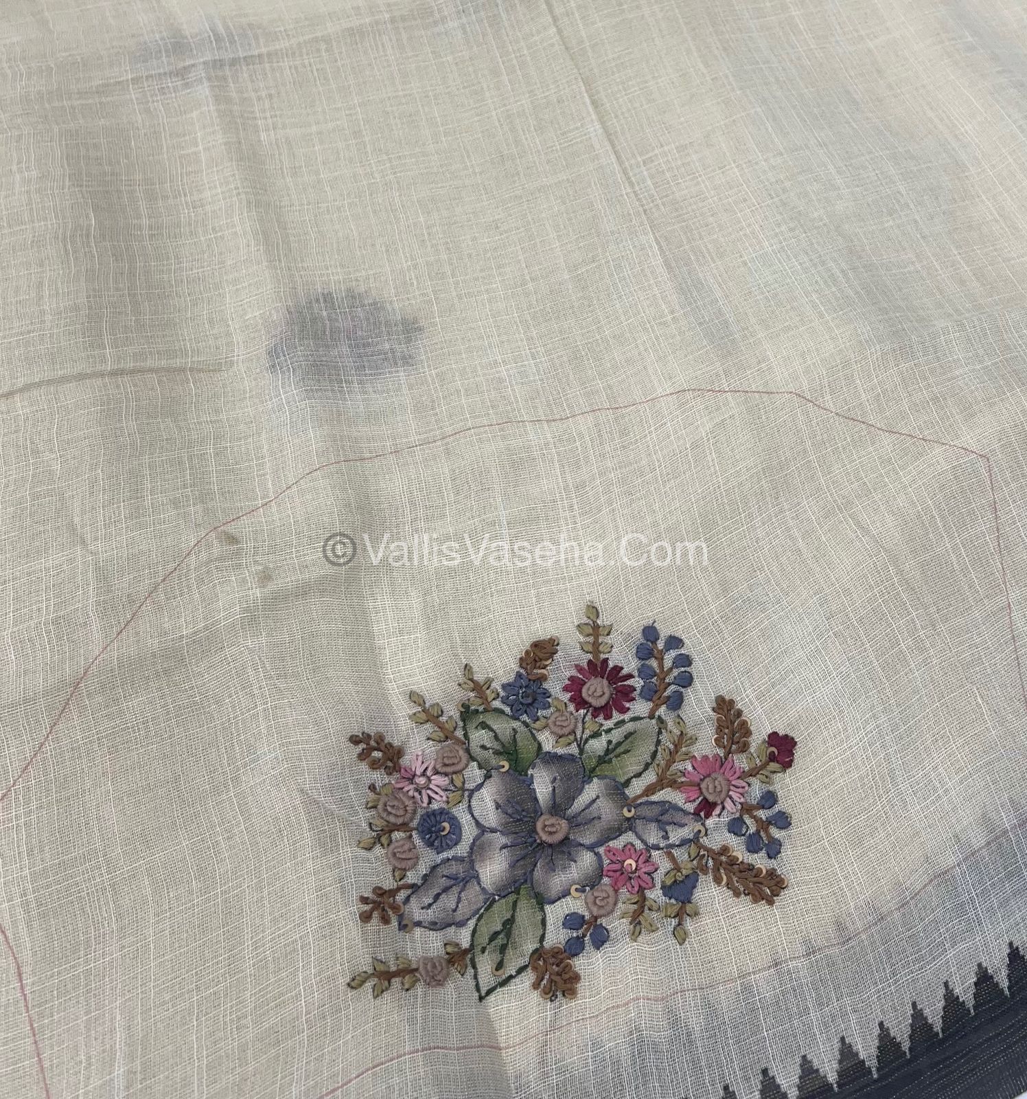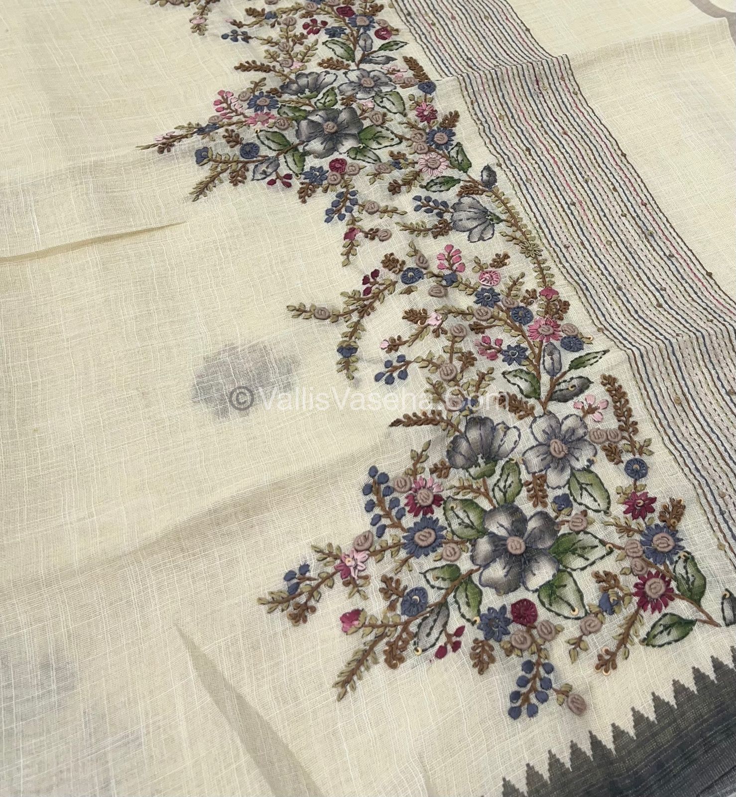 French Knot - Pure Tissue Linen Saree - All over beautiful French knot and sequence work embroidery in saree and pallu & Same French knot work given for hand sleeves too - Occasional wear…