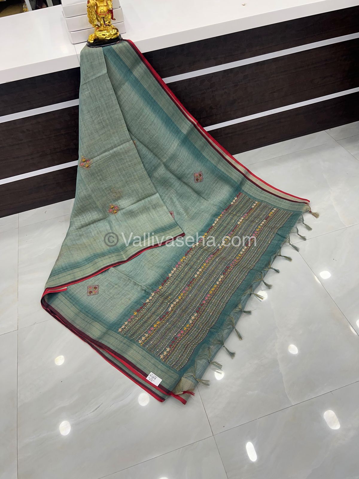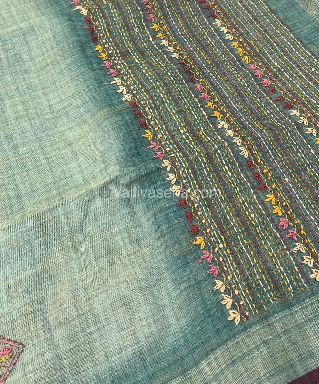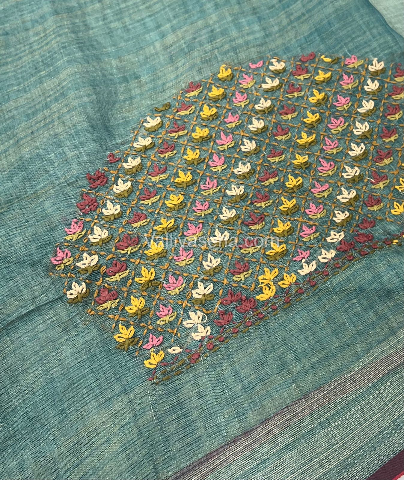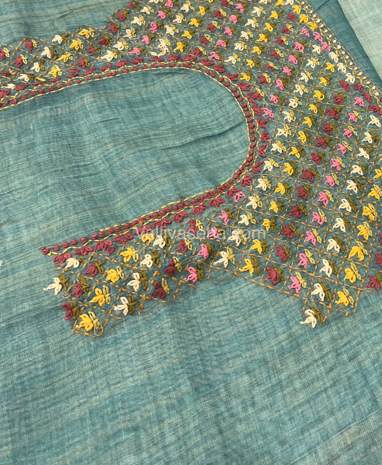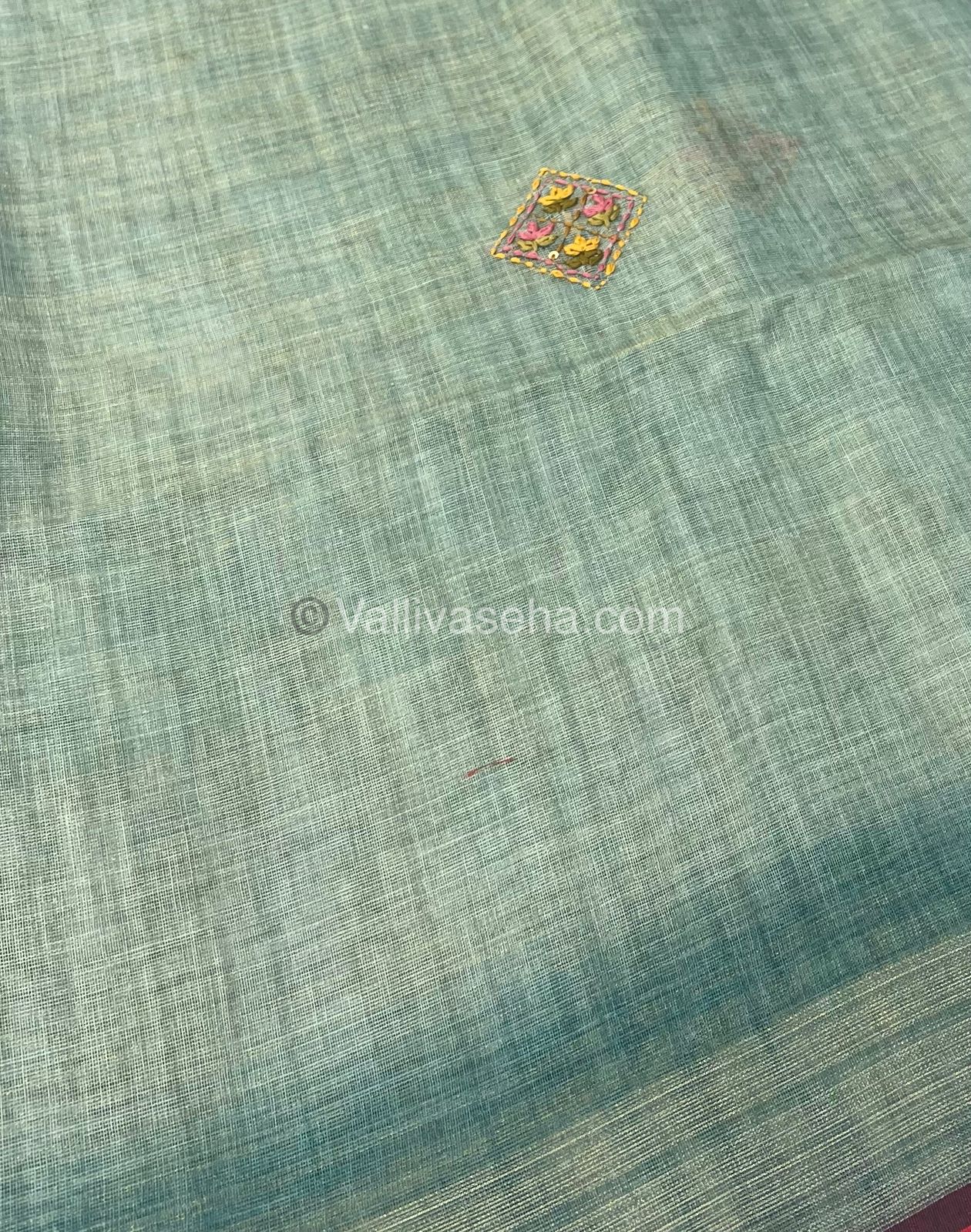 French Knot - Pure Tissue Linen Saree - All over beautiful French knot and sequence work embroidery in saree and pallu  & Same French knot work given for hand sleeves too - Occasional wear…
