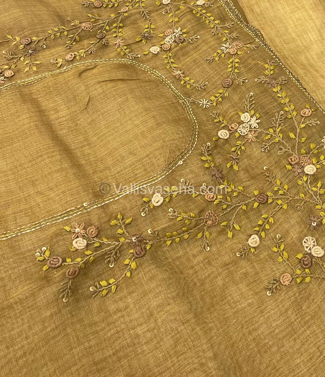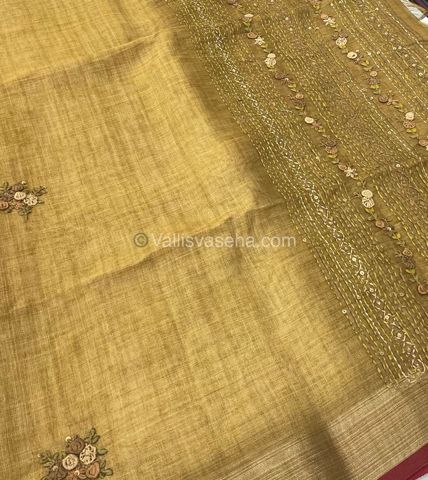 French Knot - Pure Tissue Linen Saree - All over beautiful French knot and sequence work embroidery in saree and pallu  & Same French knot work given for hand sleeves too - Occasional wear…