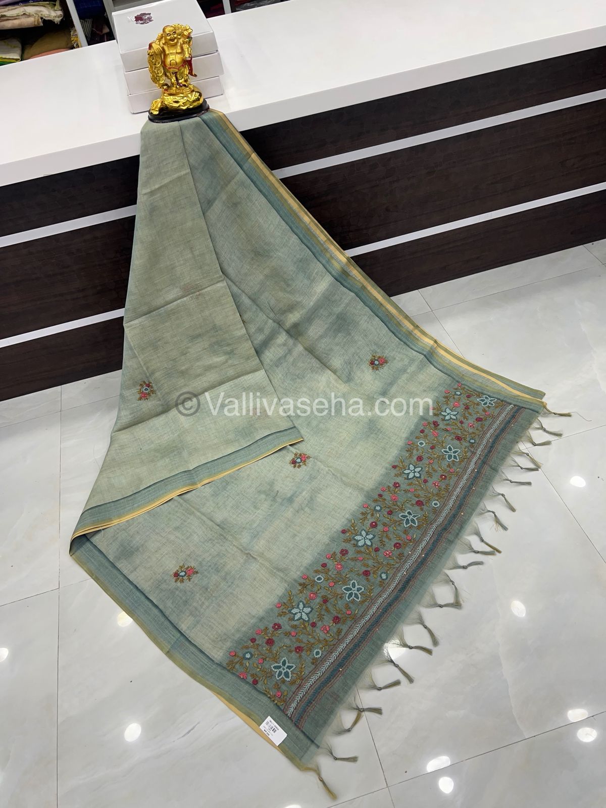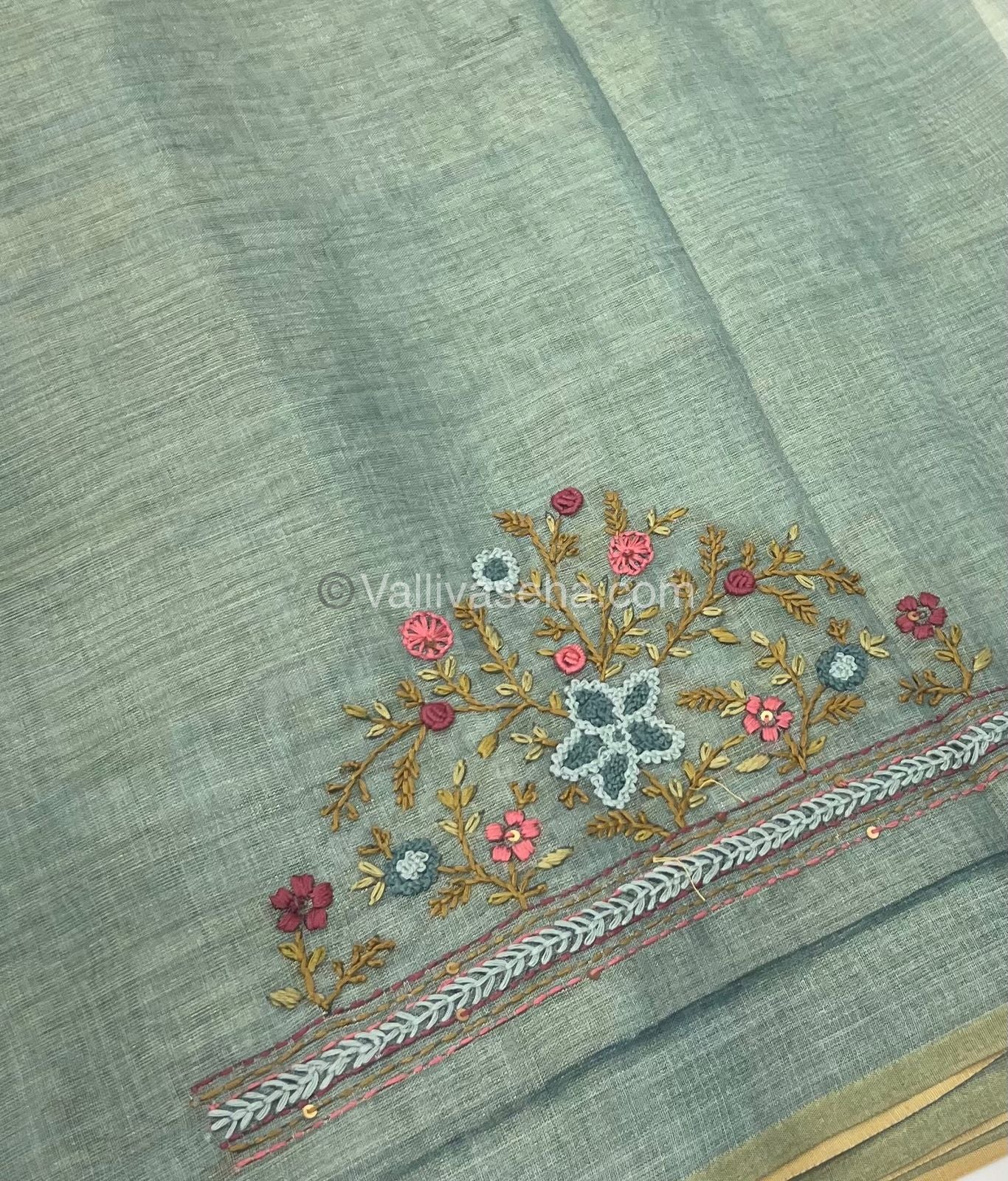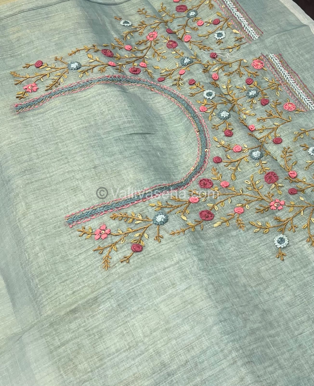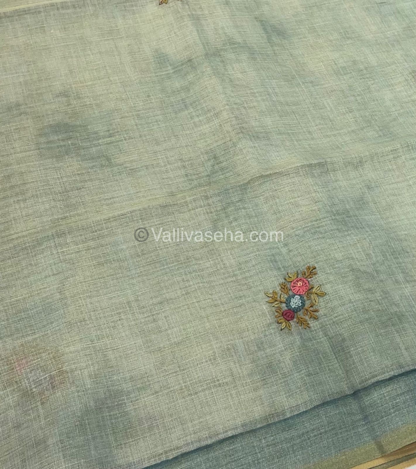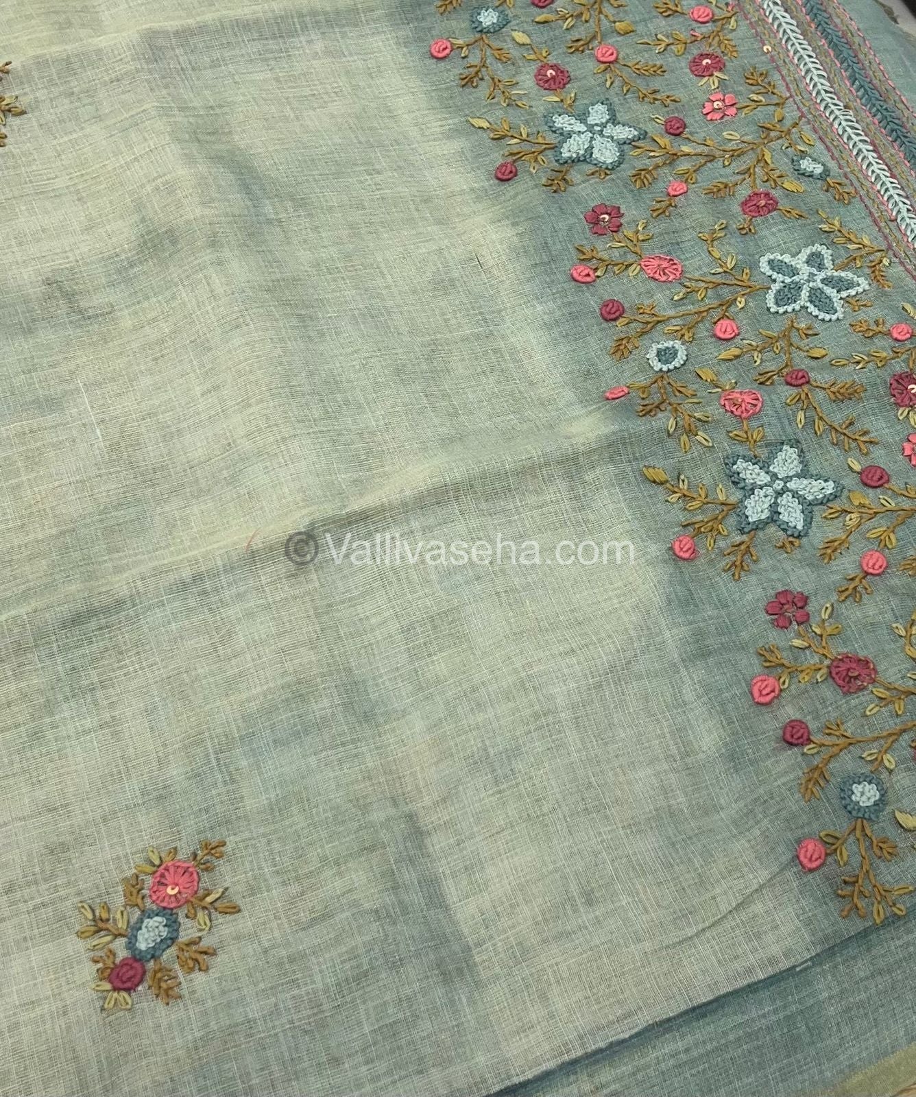 French Knot - Pure Tissue Linen Saree - All over beautiful French knot and sequence work embroidery in saree and pallu  & Same French knot work given for hand sleeves too - Occasional wear…