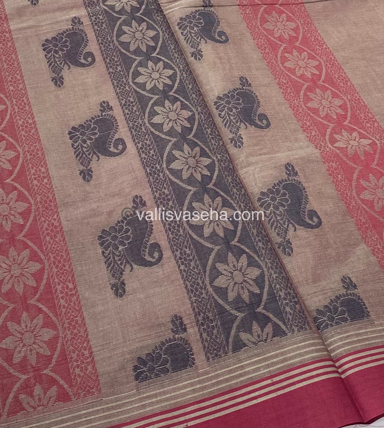 Pure Handloom South Cotton Sarees 80 counts with all over thread butta and Grand thread woven Pallu  with tassels . Running Blouse