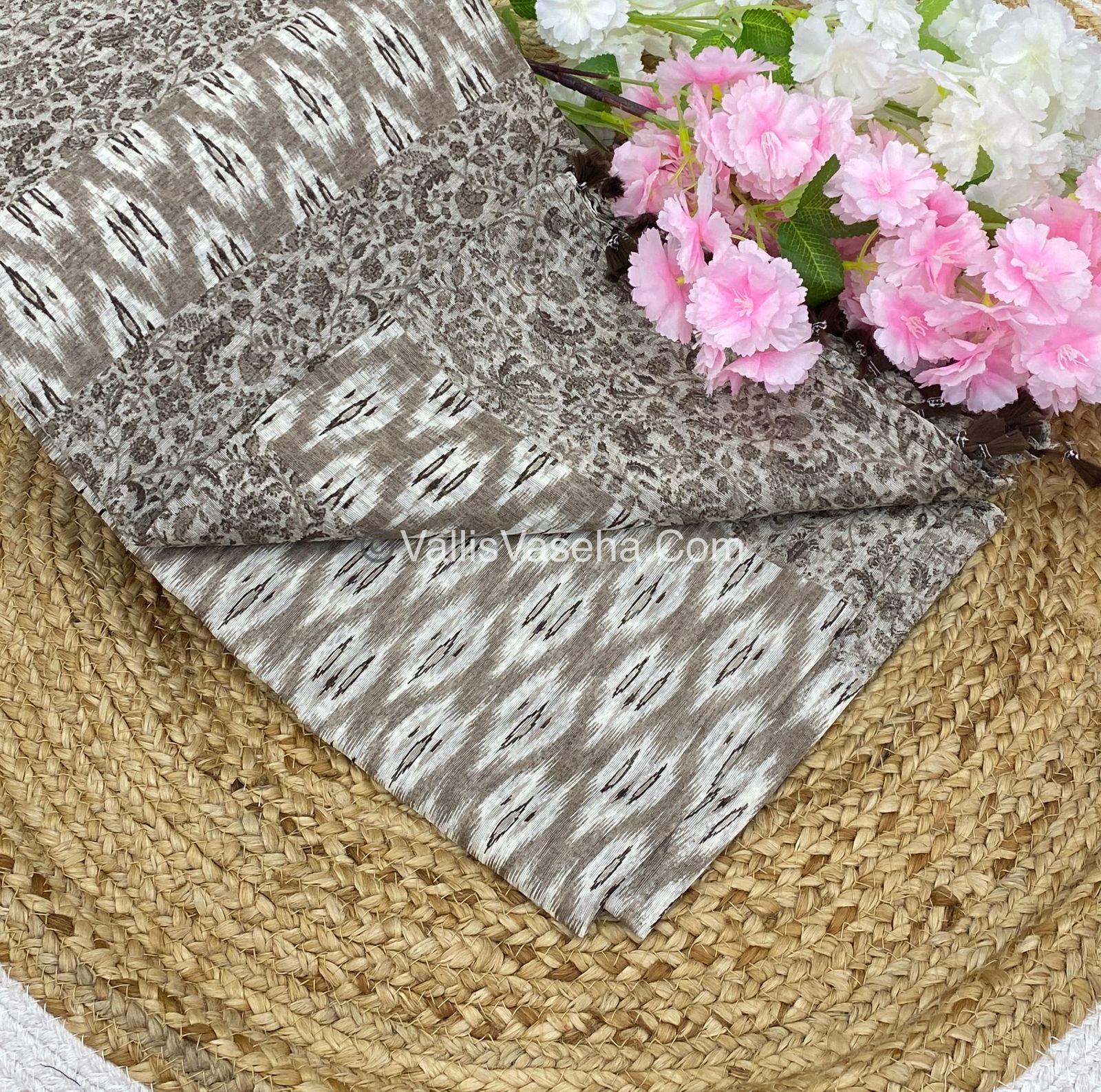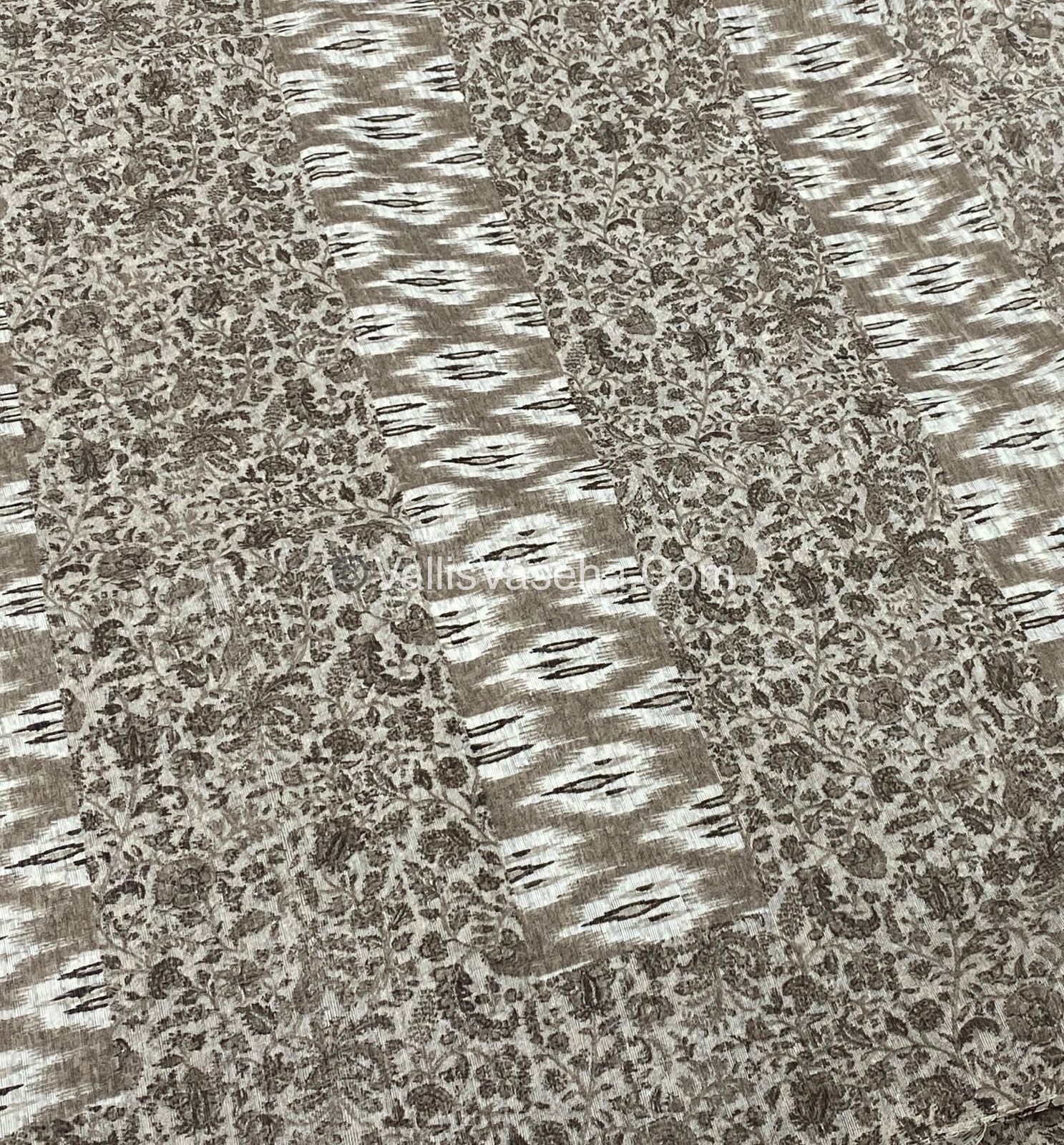 Casual Wear Sarees:- Jute Mixed Cotton | Lovely Ikkat Print all over the Saree with Ikkat Printed Pallu and Printed Blouse.