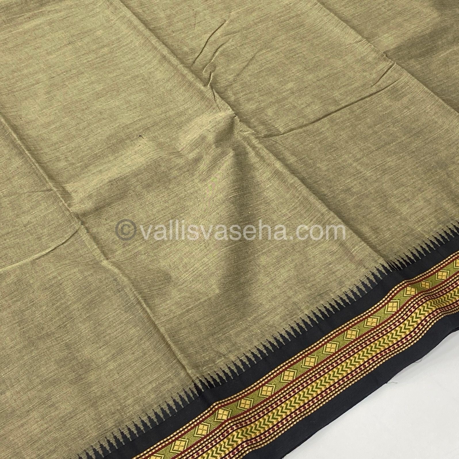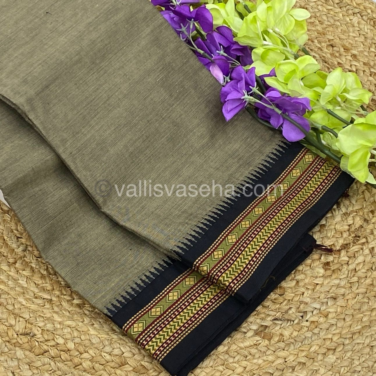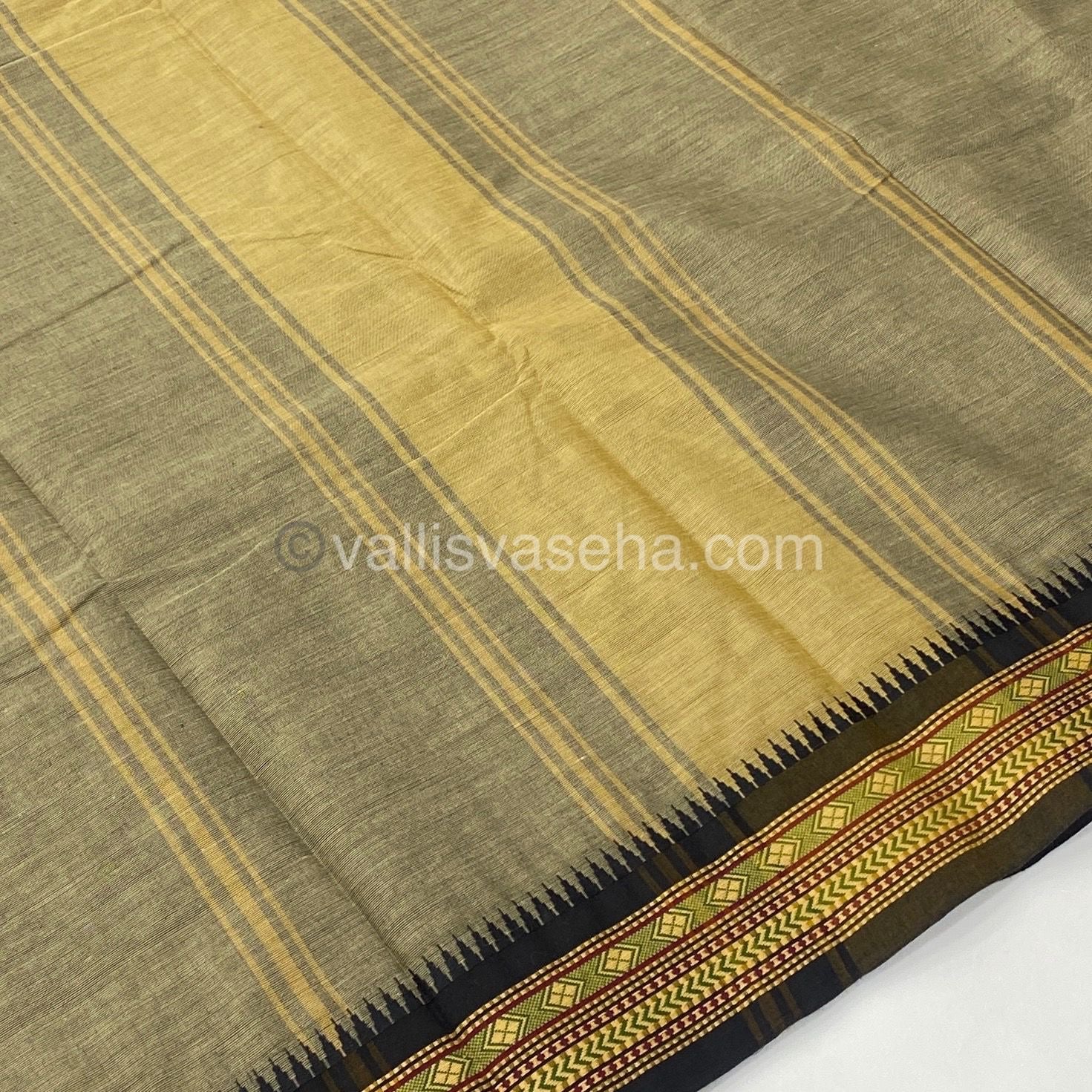 Kanchi Cotton Saree - Dark Grey with Black - VVKCS003