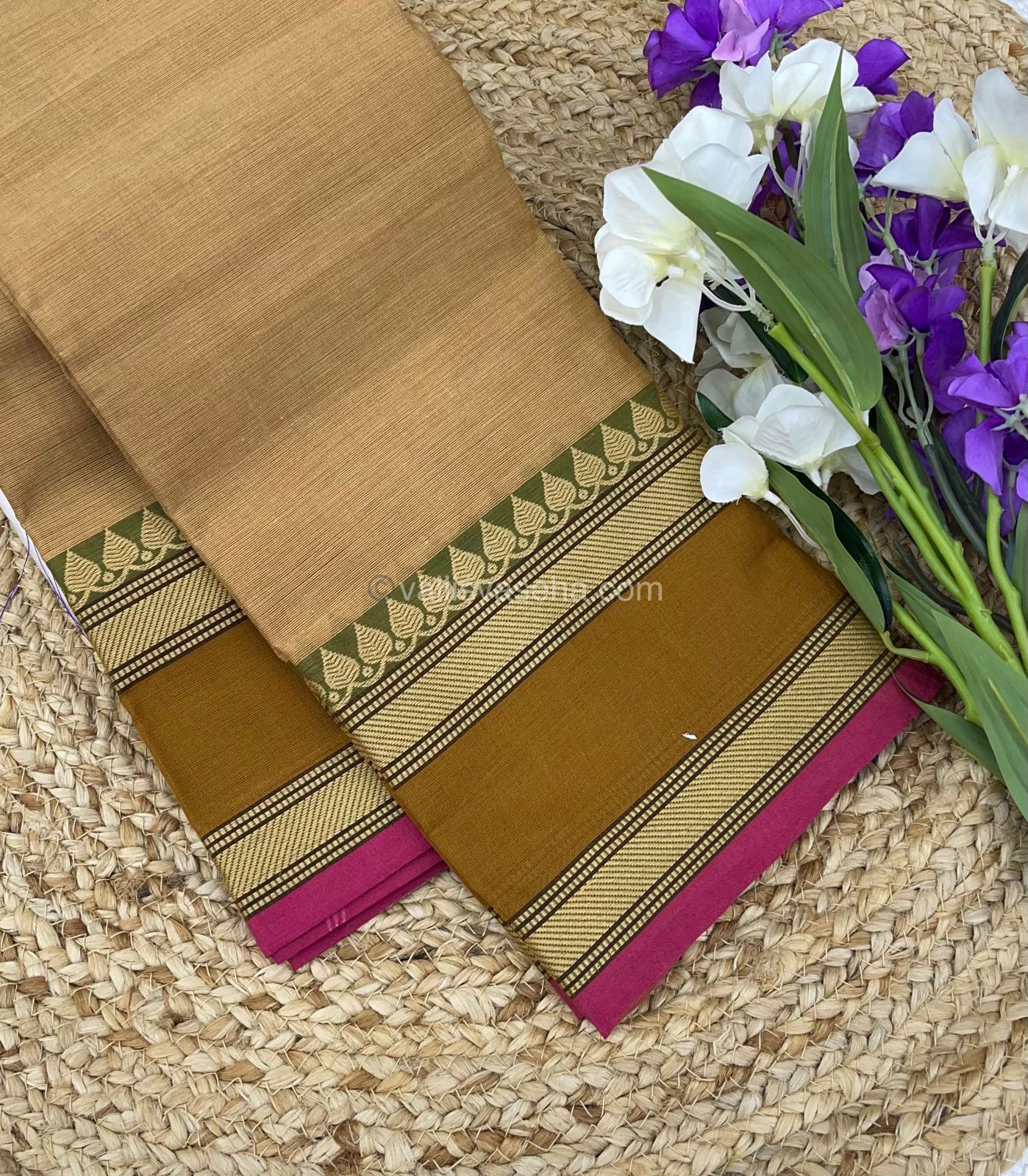 Pure Handloom Kanchi Cotton Sarees 60 counts with Stripes Pallu. Soft Thread Woven Border.