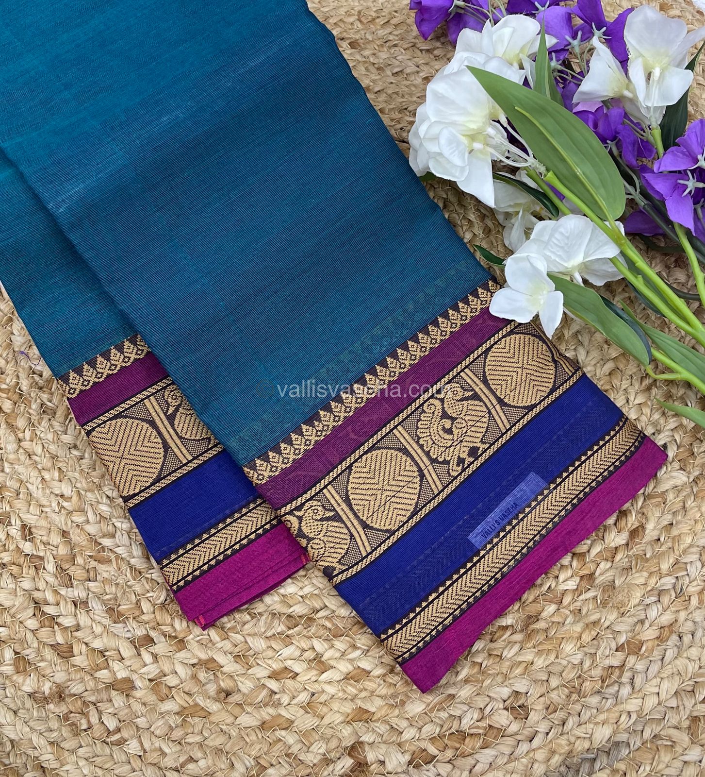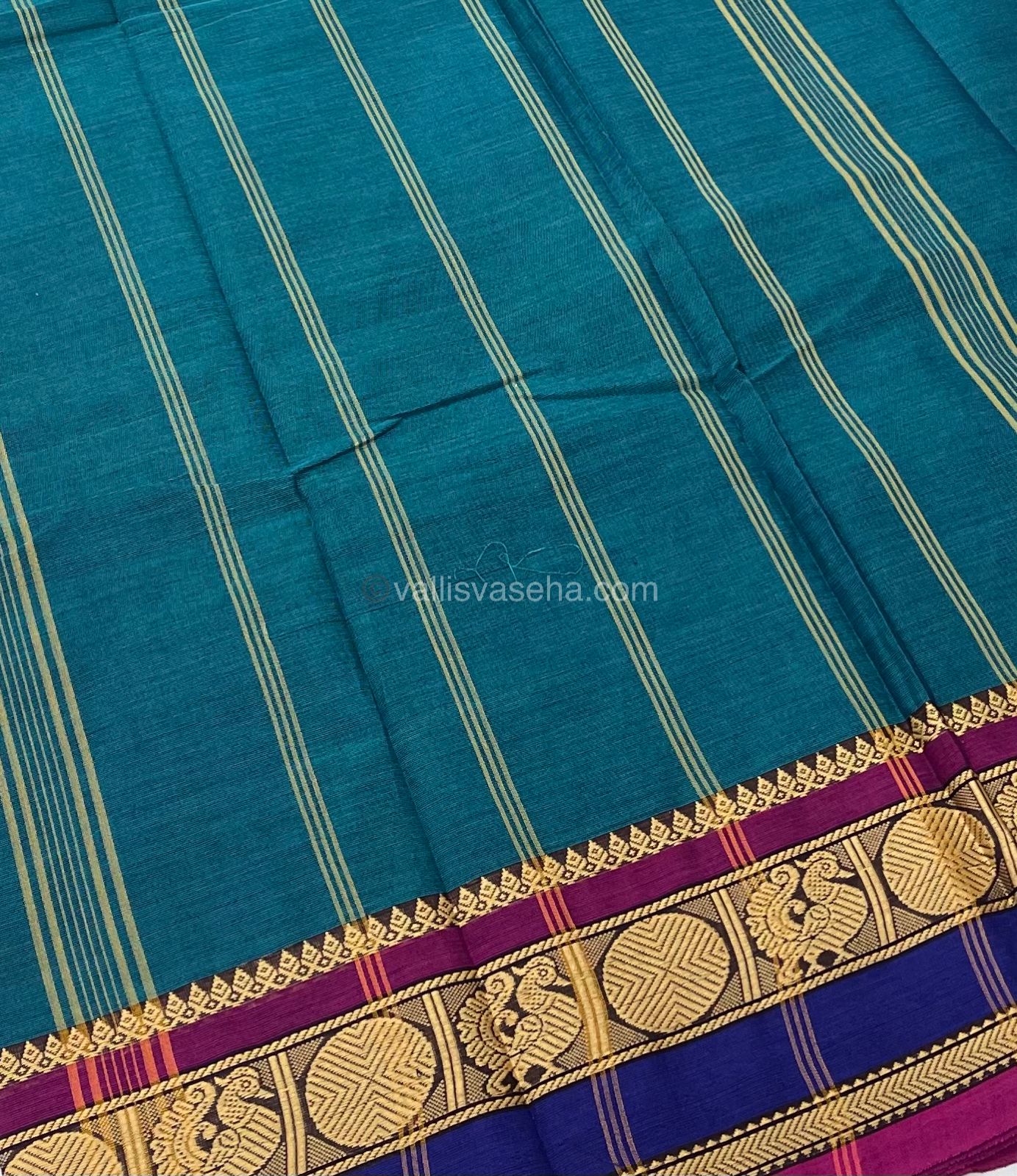 Pure Handloom Kanchi Cotton Sarees 60 counts with Stripes Pallu. Soft Thread Woven Border.