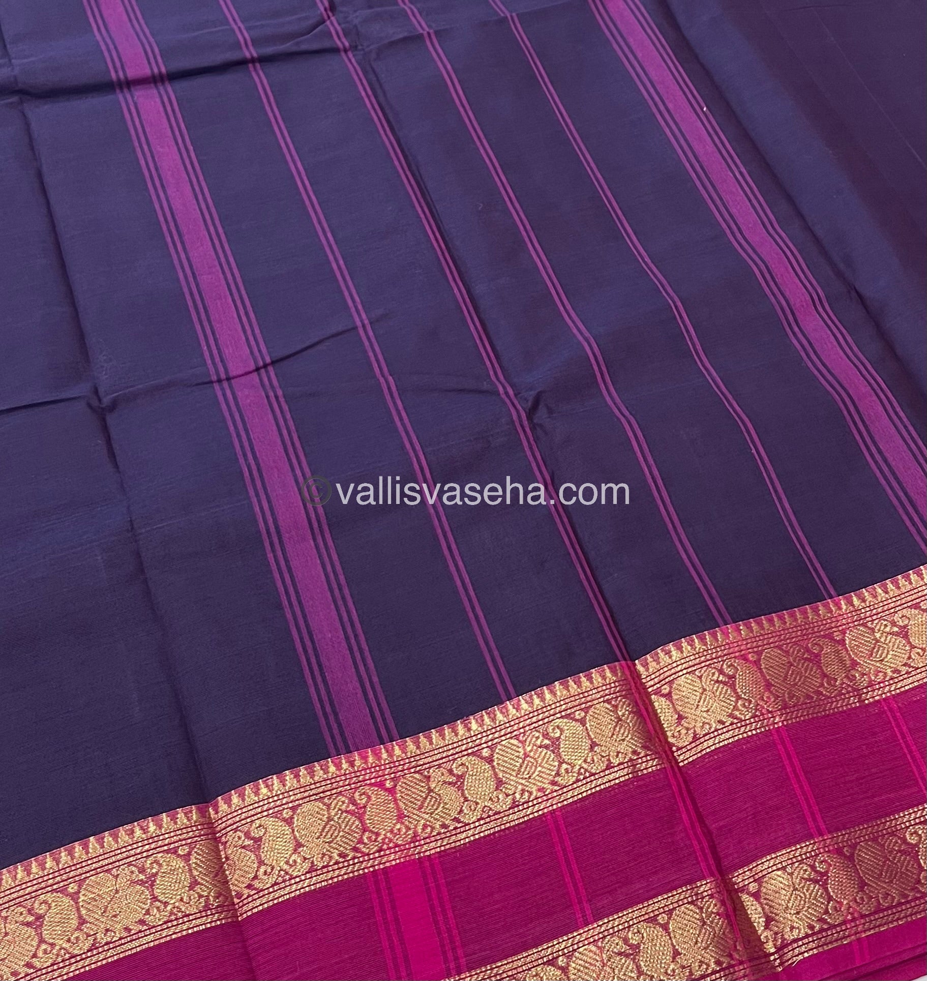 Pure Handloom Kanchi Cotton Sarees 80 counts with Stripes Pallu  with Zari Woven Border .