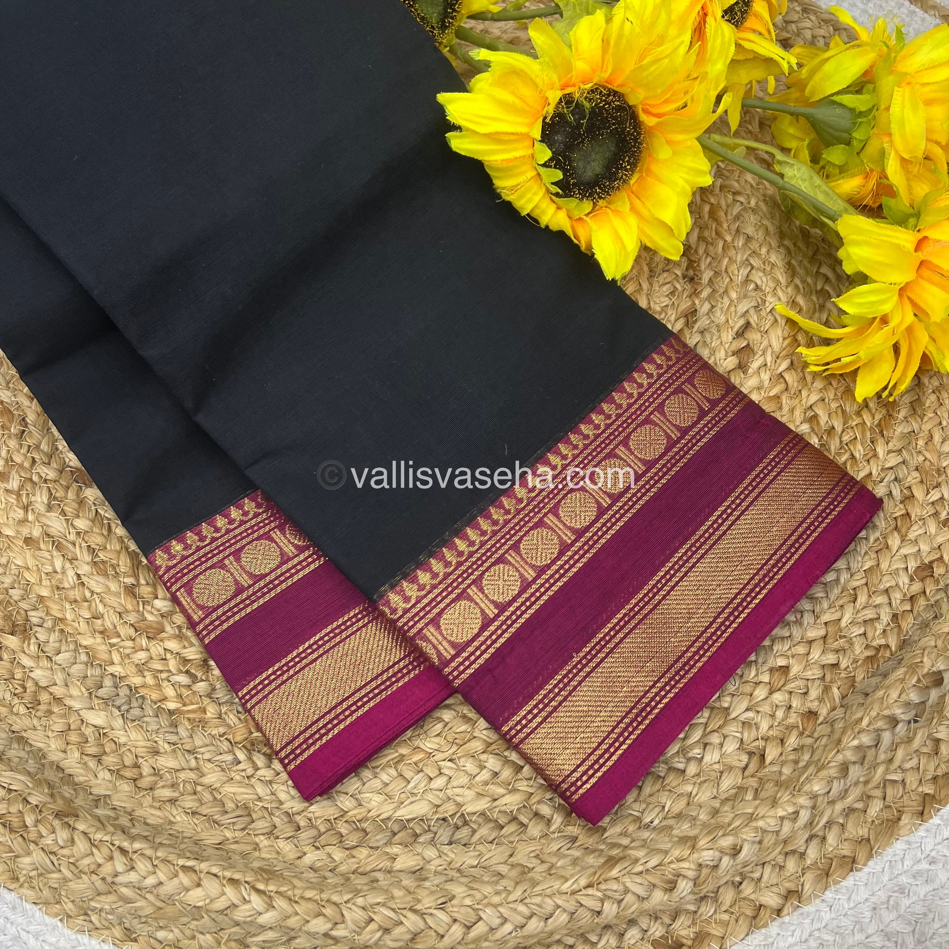 Pure Handloom Kanchi Cotton Sarees 80 counts with Stripes Pallu with Zari Woven Border .