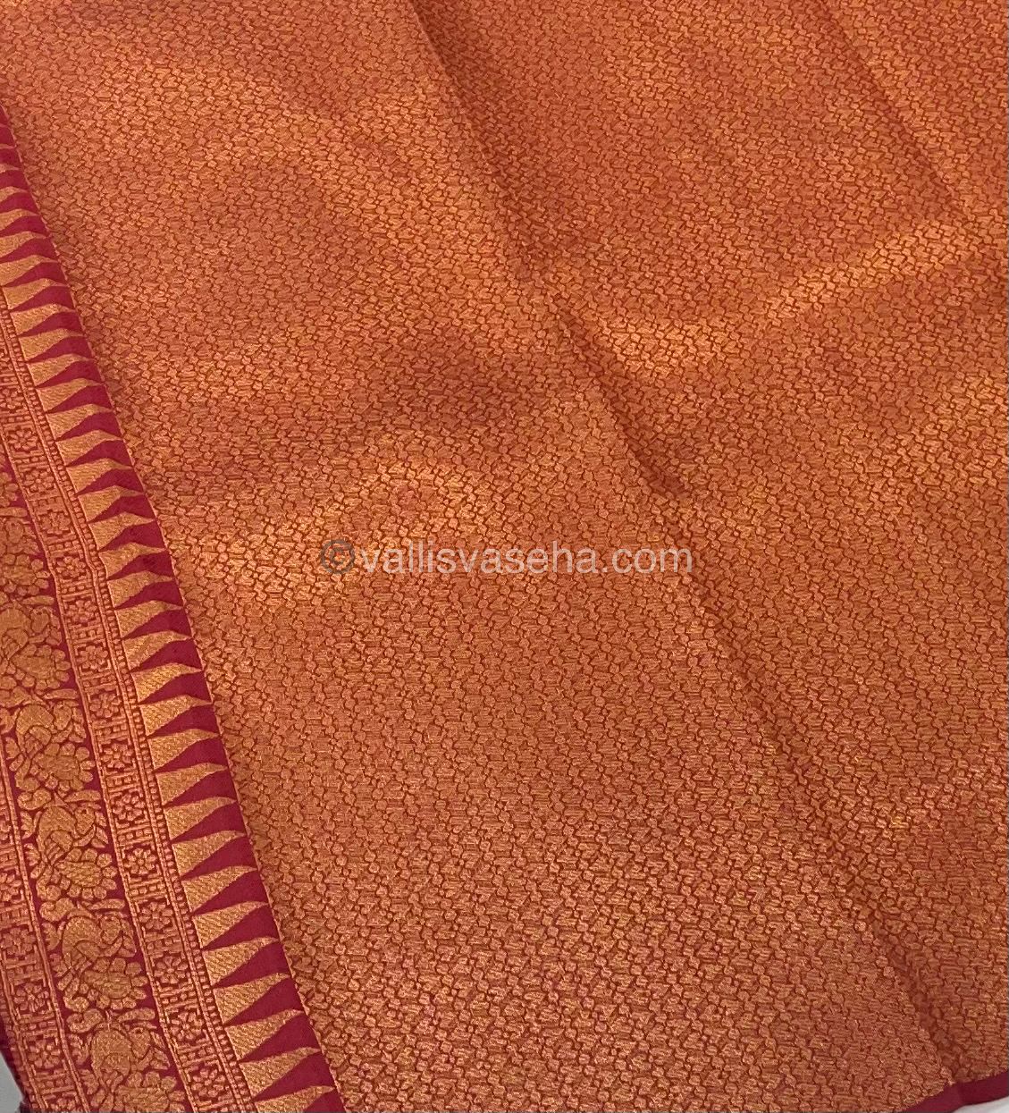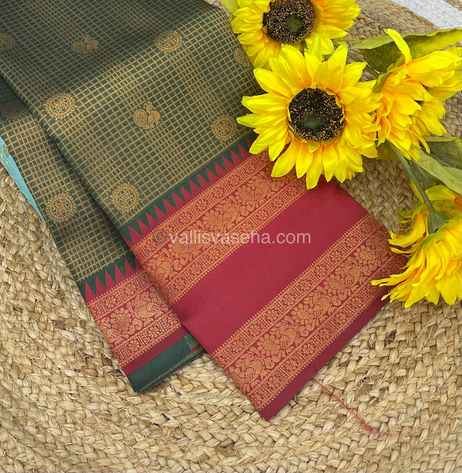 Kanchi Semi Silk - Green with Red - Mayil & Chakkaram design - VVKSS001