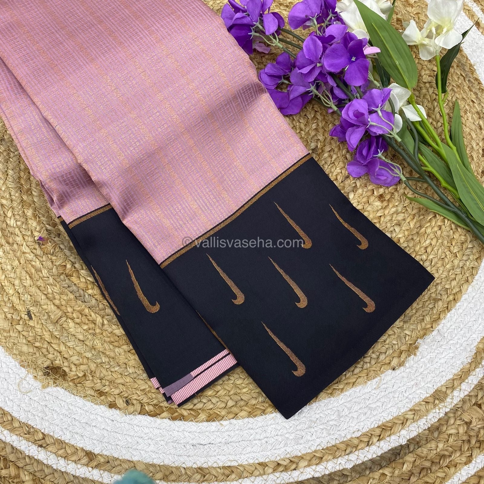 Kanchi Semi Silk - Light Pink with Black - VVKSS001