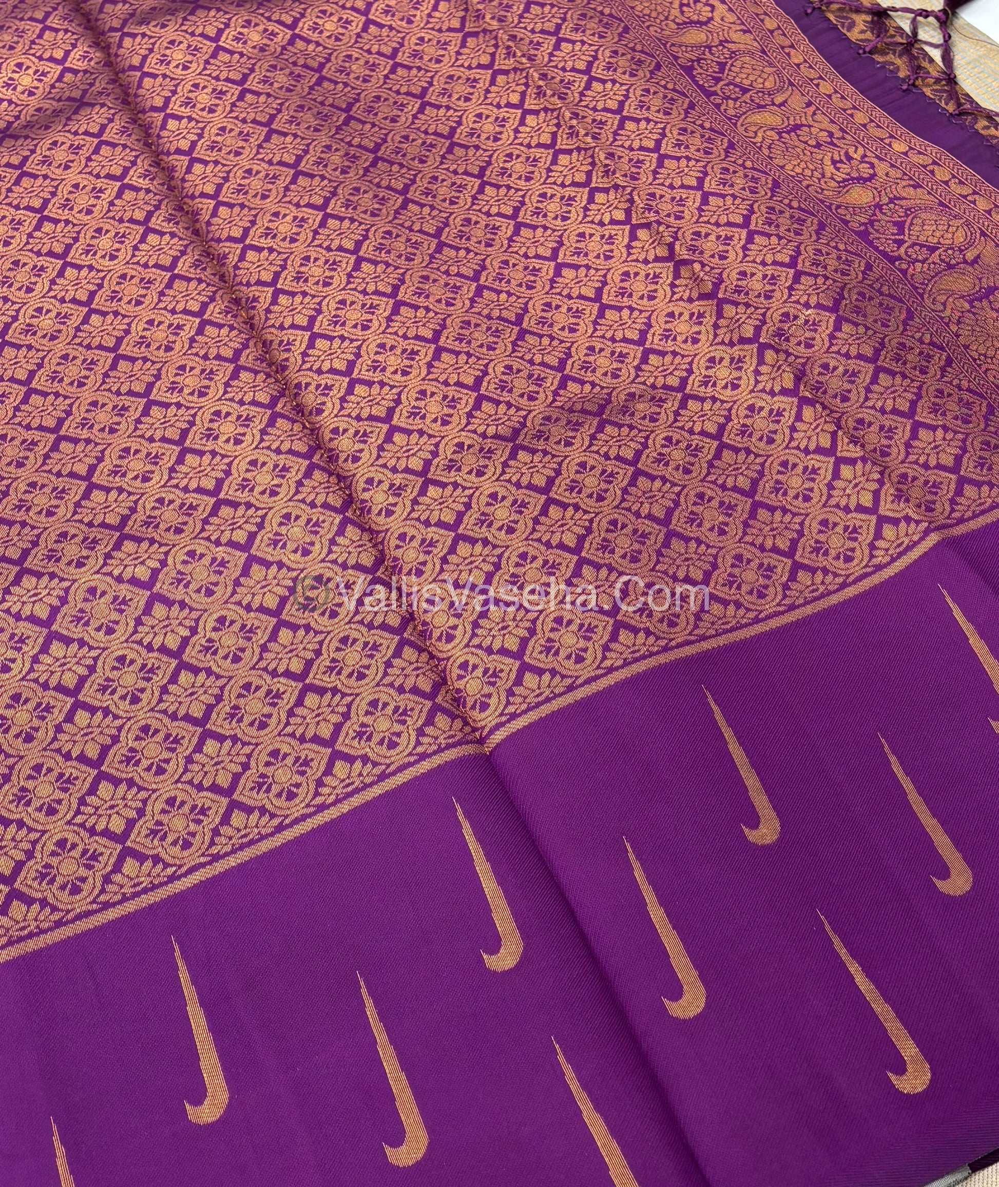 Kanchi Semi Silk With Tassels - Creamish Grey with Purple - VVKSS004