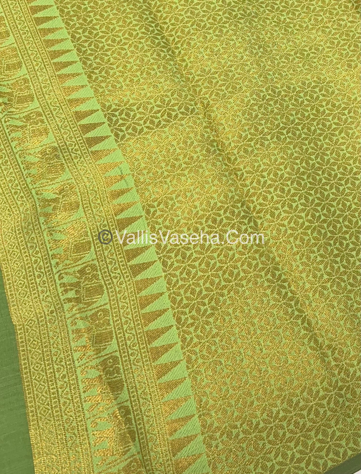 Kanchi Semi Silk - Elephant Border& design - Pink & Green- VVSSS005