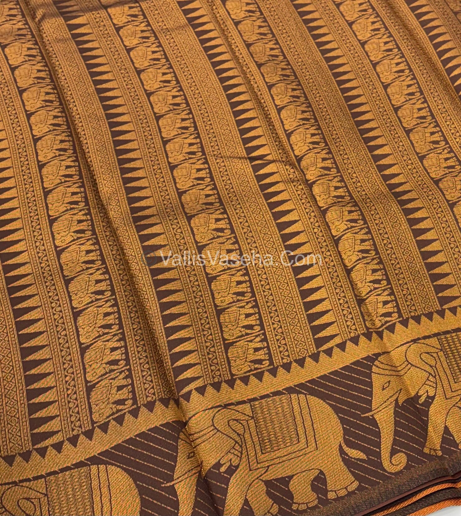 Kanchi Semi Silk - Elephant Border& design - Rust Orange & Brown - VVSSS005