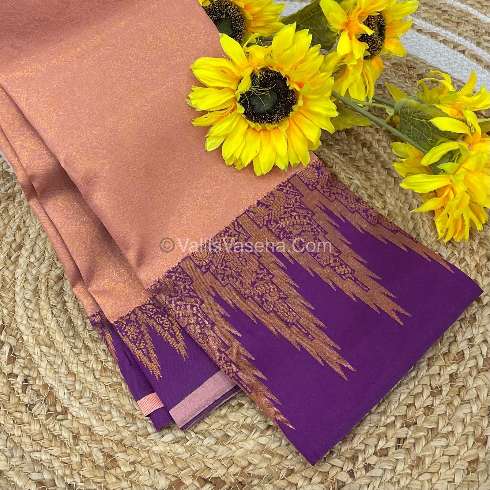 Kanchi Semi Silk - Peach with Purple - VVKSS003