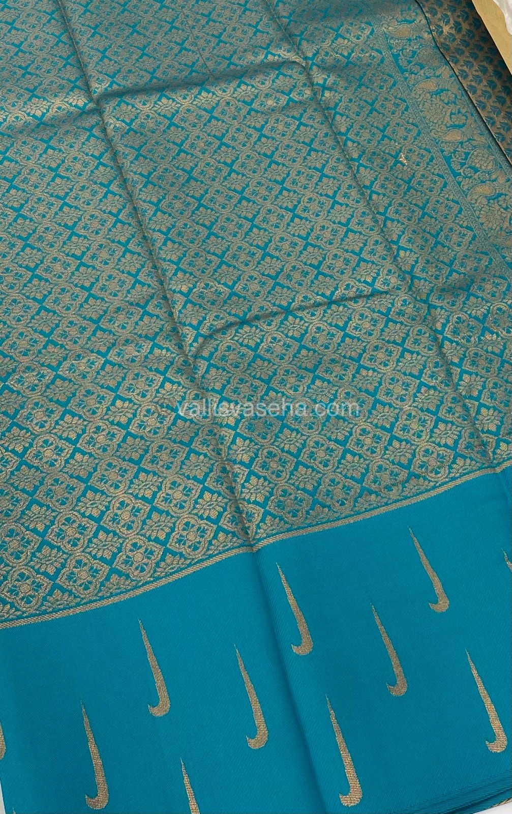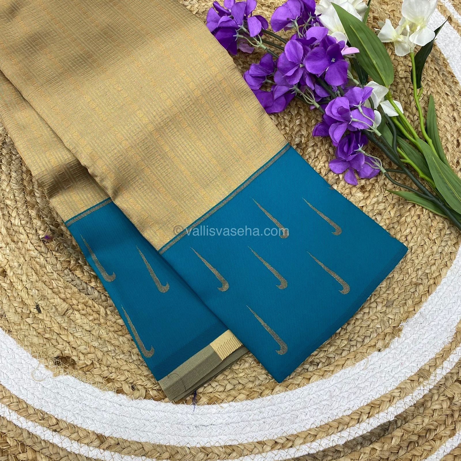 Kanchi Semi Silk - Cream with Ramar Blue - VVKSS001