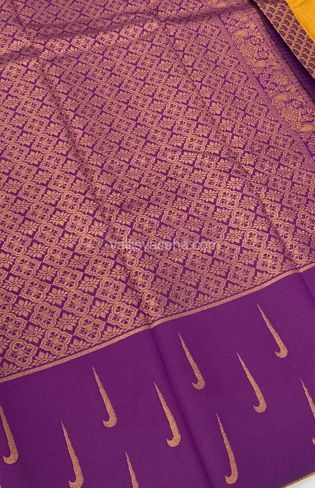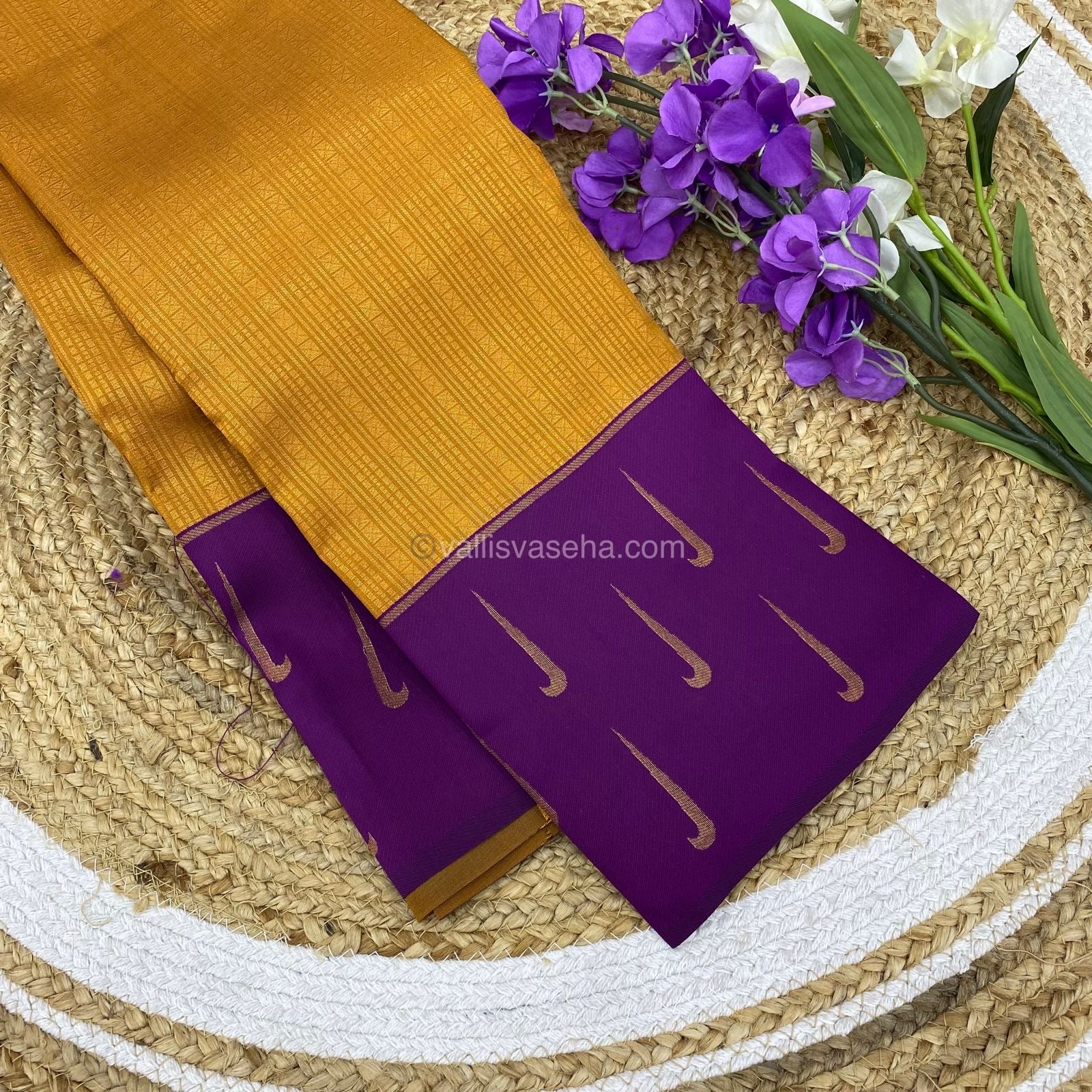 Kanchi Semi Silk - Dark Yellow with Purple - VVKSS001